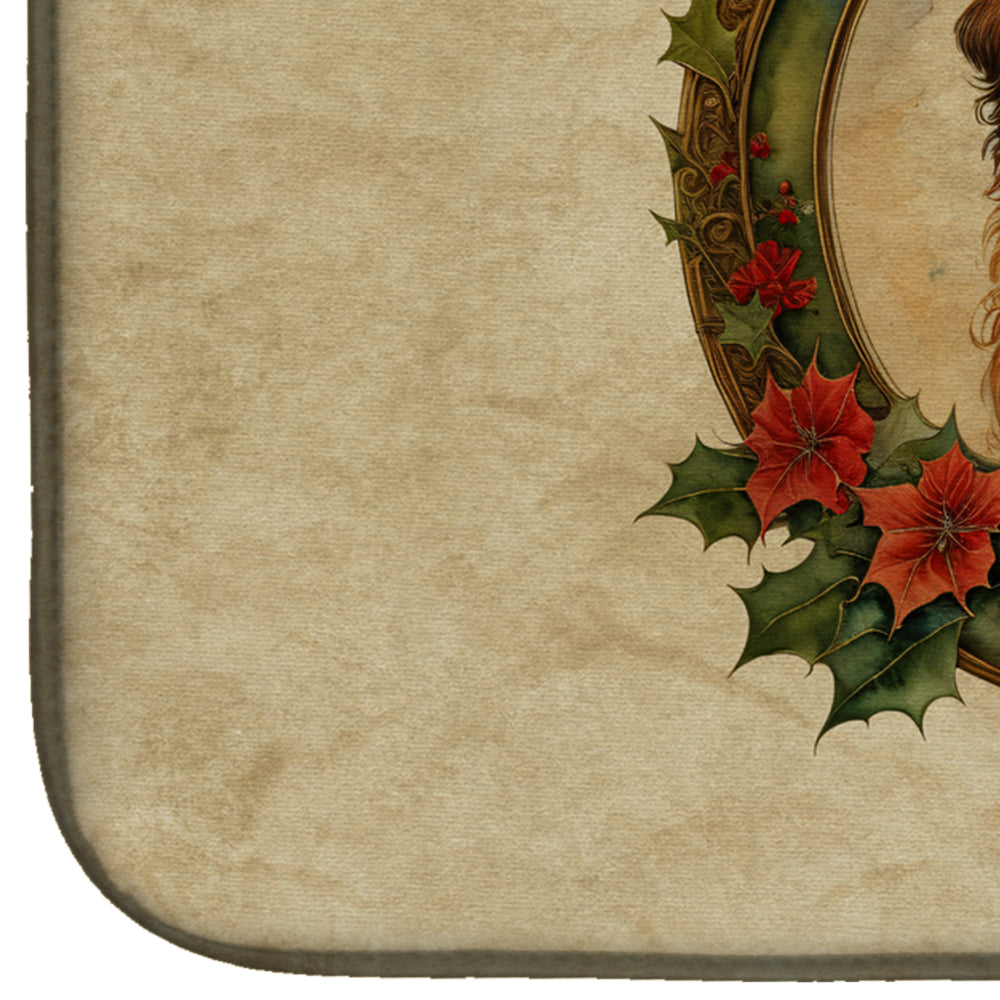 Dish Drying Mat featuring breed specific Leonberger artwork. Celebrate Christmas with this Christmas Dish Drying Mat. Say goodbye to messy countertops and soggy dish towels with our innovative dish drying mat. Our high-quality dish drying pad is designed to keep your countertops dry while offering a stylish and efficient solution. Whether you're air drying dishes, glasses, stemware, silverware, pots, pans, bottles, or even fruits and vegetables, our dish mat is the perfect choice. The 14 inches x 22 inches size fits most counters and dish drying racks, and the non-slip design ensures stability. Made with water-absorbent polyester and a polyurethane foam insert, our dish drying mat is not only functional but also durable. It's machine washable and printed in the USA for long-lasting use. The beautiful artwork adds flair to your kitchen decor, making it a perfect housewarming gift or present for any occasion. Upgrade your kitchen experience with our absorbent and versatile dish drying mat.