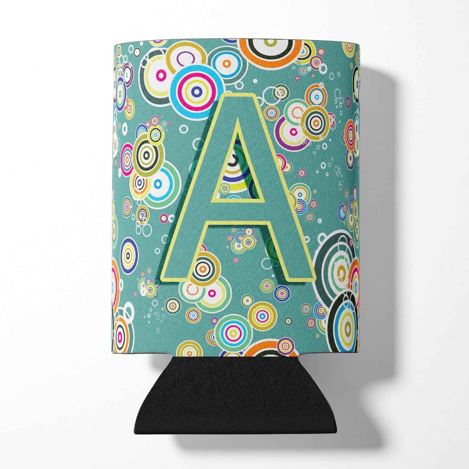 Letter A Circle Circle Teal Initial Alphabet Can or Bottle Hugger CJ2015-ACC