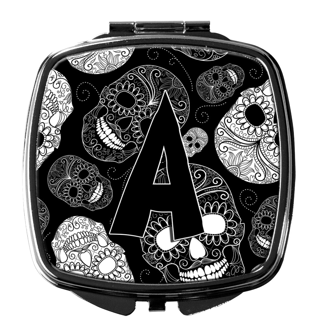 Letter A Day of the Dead Skulls Black Compact Mirror – Stylish Purse Mirror with Artistic Covers CJ2008-ASCM