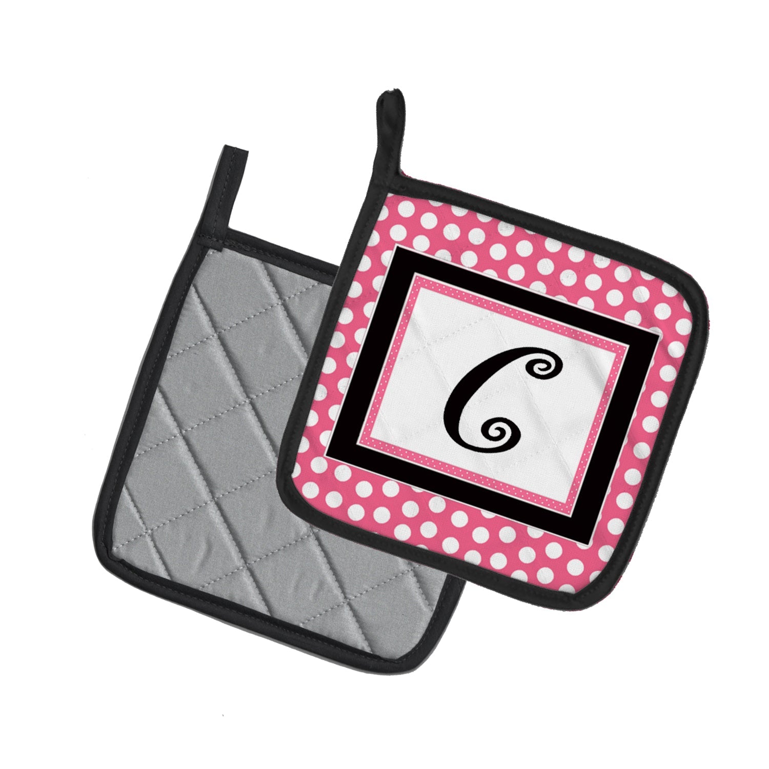 Letter C Monogram - Pink Black Polka Dots Pot Holders - Set of 2 - Heat-Resistant Kitchen Essentials CJ1001-CPTHD