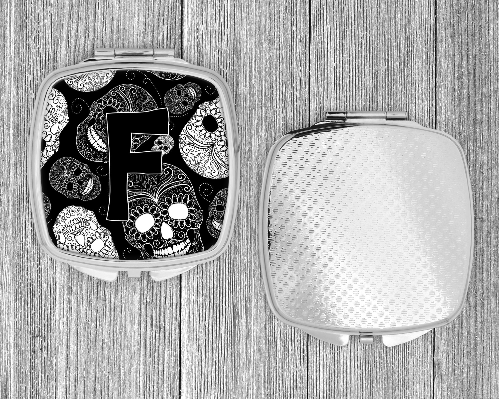 Letter F Day of the Dead Skulls Black Compact Mirror – Stylish Purse Mirror with Artistic Covers CJ2008-FSCM
