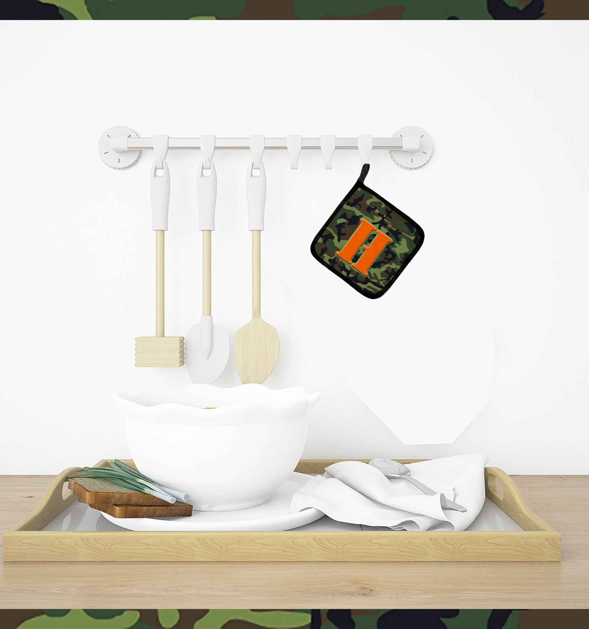 Letter H Monogram - Camo Green Pot Holders - Set of 2 - Heat-Resistant Kitchen Essentials CJ1030-HPTHD