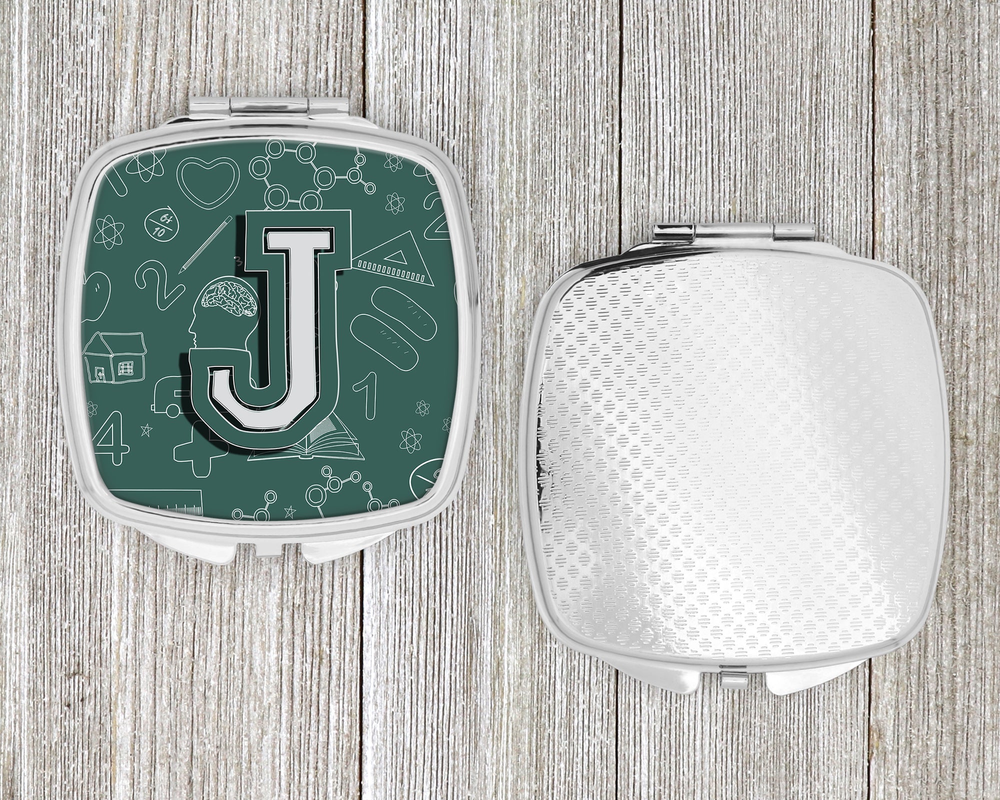 Letter J Back to School Initial Compact Mirror – Stylish Purse Mirror with Artistic Covers CJ2010-JSCM