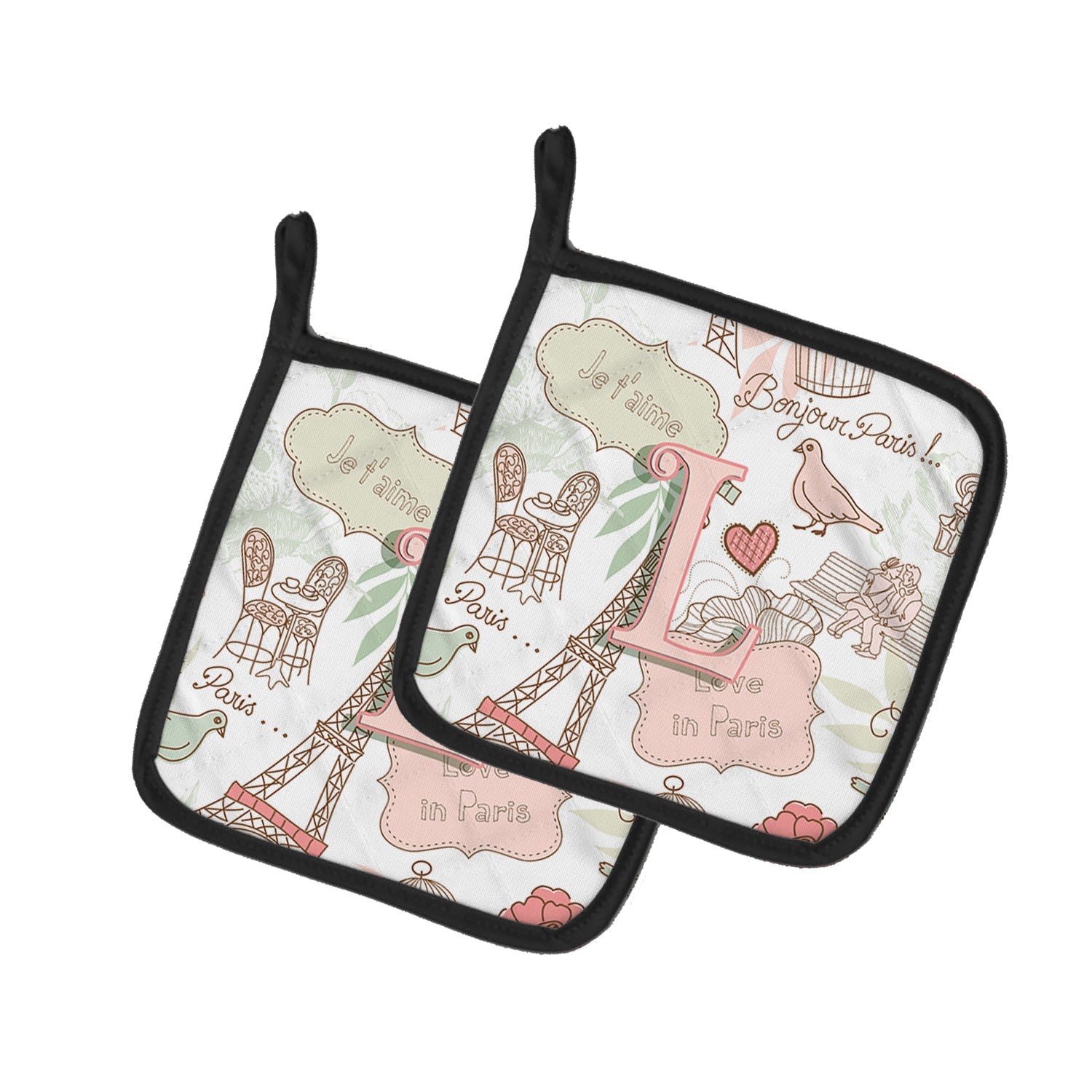 Letter L Love in Paris Pink Pot Holders - Set of 2 - Heat-Resistant Kitchen Essentials CJ2002-LPTHD