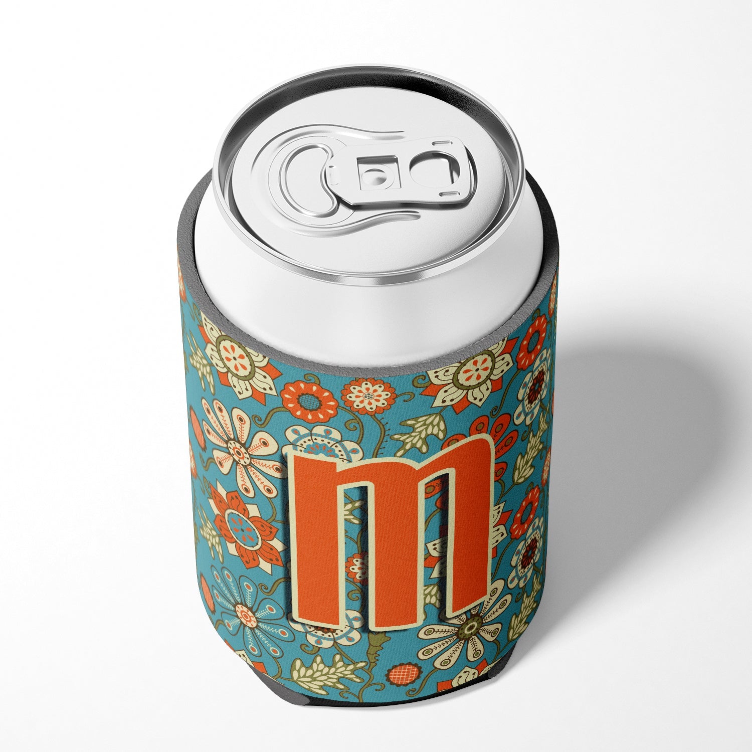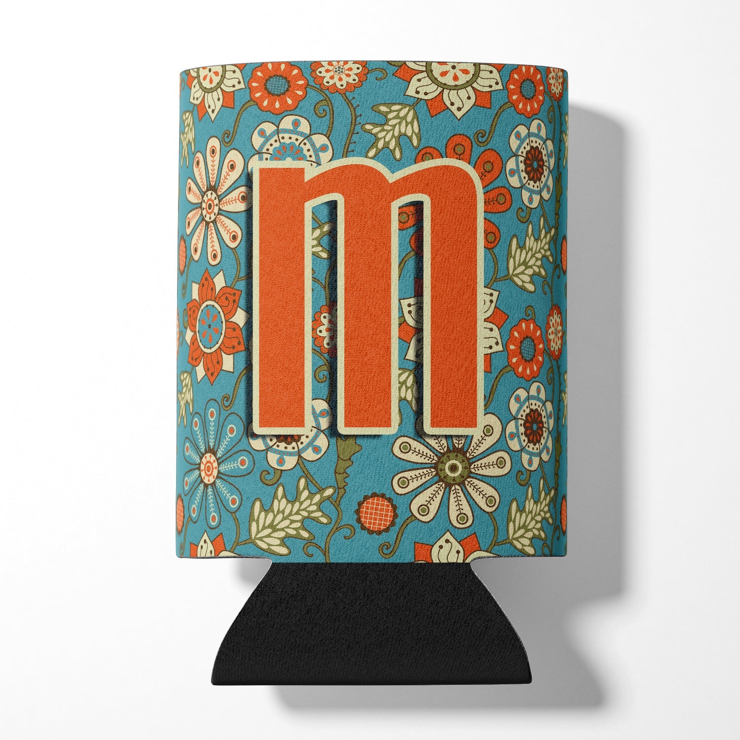Letter M Flowers Retro Blue Can or Bottle Hugger CJ2012-MCC