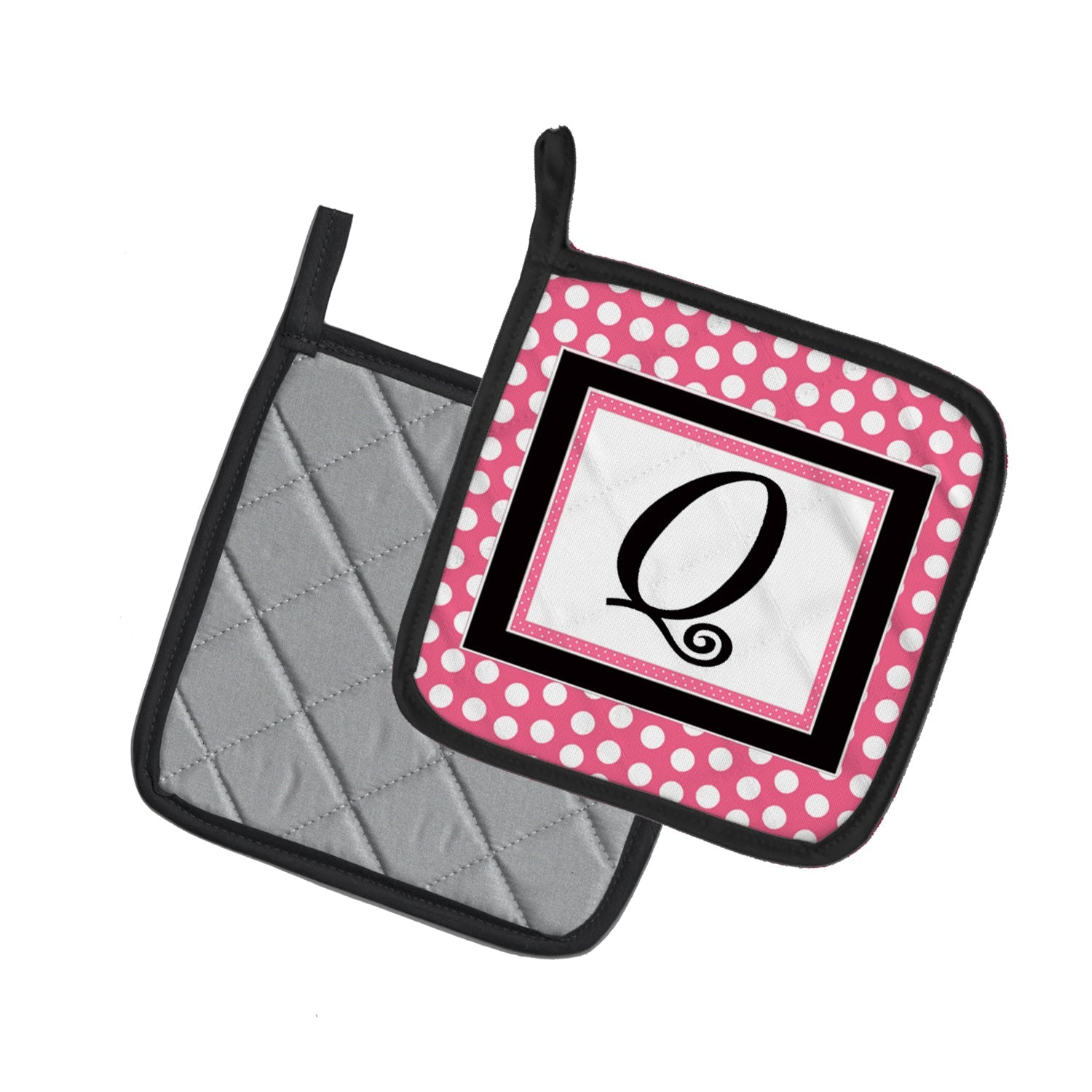Letter Q Monogram - Pink Black Polka Dots Pot Holders - Set of 2 - Heat-Resistant Kitchen Essentials CJ1001-QPTHD