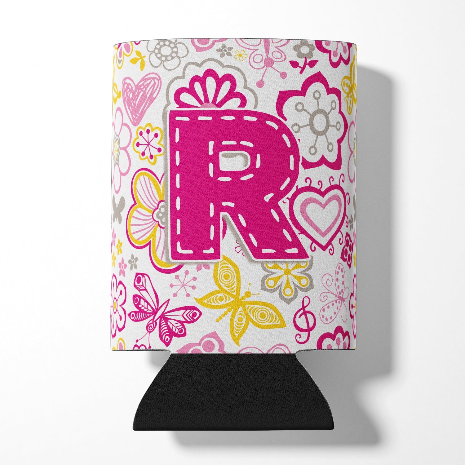 Letter R Flowers and Butterflies Pink Can or Bottle Hugger CJ2005-RCC