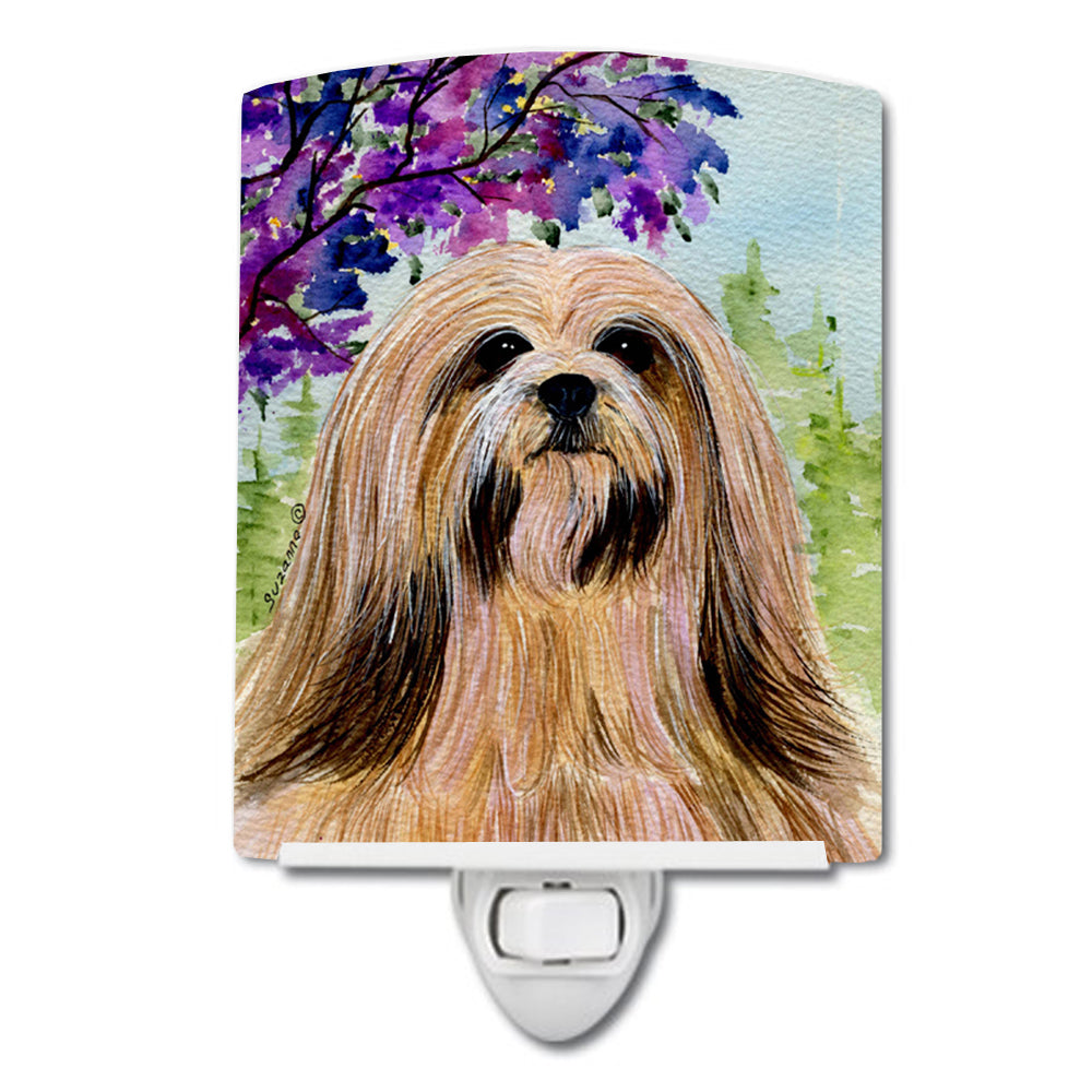 Decorate your space with our Lhasa Apso artwork on a Night Light. Introduce a splash of artistic flair and subtle illumination to your space with the Decorative Ceramic Night Light from Caroline's Treasures. Perfect for any room, this night light seamlessly blends functionality with an aesthetic appeal, offering a stylish solution to brighten up dark corners of your home or office. Boasting a six-inch high by four-inch wide ceramic tile at the front, it showcases vivid, full-color artwork from distinguished artists, transforming a simple utility into a vibrant art piece. The artwork is securely encased in a robust metal holder, ensuring durability and longevity. Two screws are provided to firmly affix the tile into the holder. The holder extends three inches deep, housing an included bulb that emits a soft, welcoming glow. This product meets all safety standards, as evidenced by its UL approval. Proudly made in the United States from imported components, this Decorative Ceramic Night Light is not just a functional device; it's a statement piece that enhances the ambiance of your surroundings.
