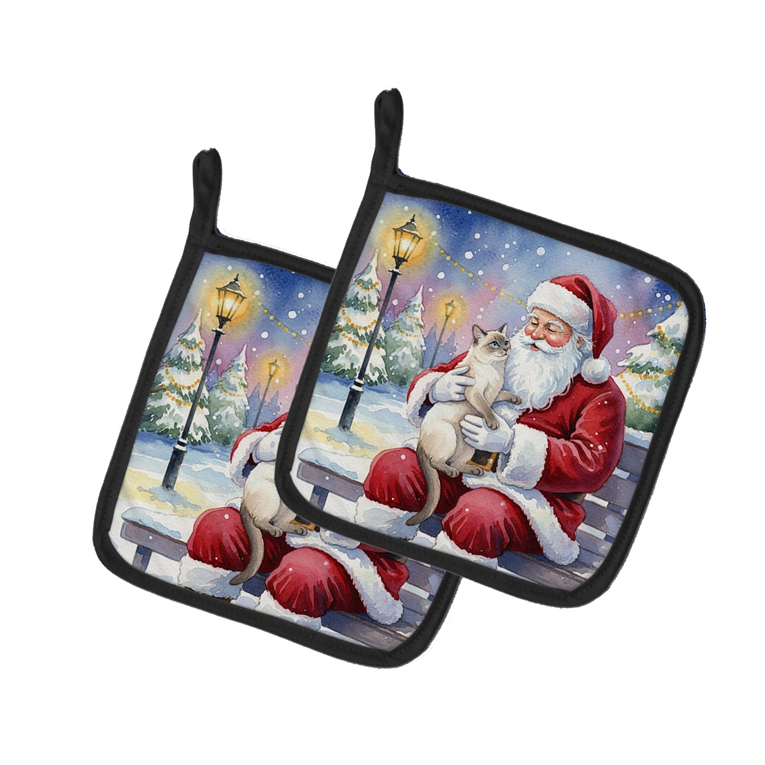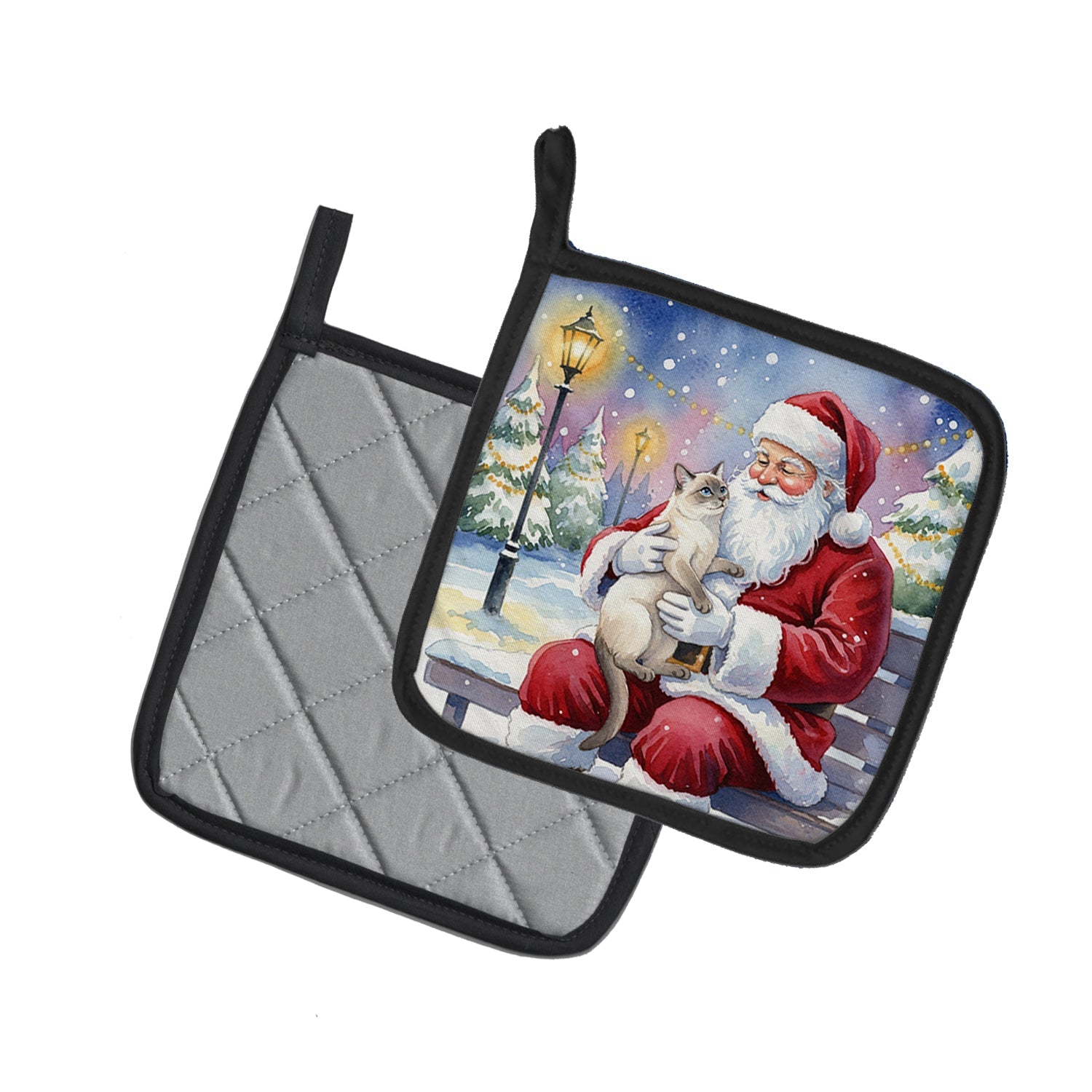Pair of Pot Holders featuring breed specific Lilac Point artwork. Celebrate Christmas with this Christmas Pair of Pot Holders. Add warmth, personality, and function to your kitchen with our Vegetables Pot Holder Pair. Each set includes two quilted hot pads, featuring original full-color watercolor artwork on a soft polyester front accented by black trim. Crafted with multiple layers for performance: Top Layer: Vibrant artwork permanently dyed into polyester fabric. Middle Layer: US-manufactured insulated material with breathable polyester fibers and a reflective metalized film that reflects heat back to its source. Bottom Layer: A silver heat-resistant backing for extra protection. Each pot holder measures 7.5" x 7.5", includes a hanging tab, and is quilted for durability. Use them to protect your hands, countertops, and tabletops — or as decorative trivets for Thanksgiving, Christmas, or everyday meals.