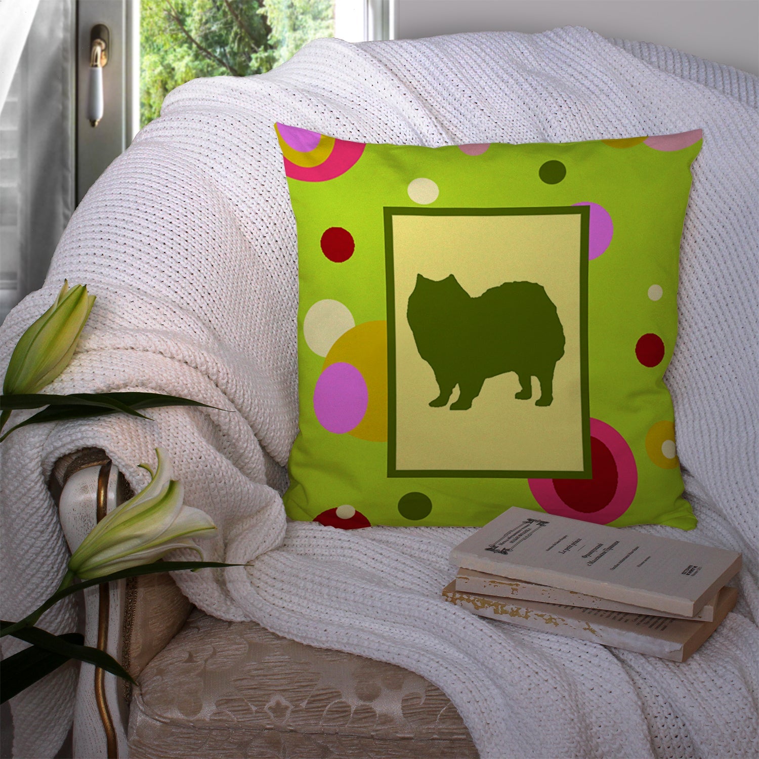 Decorate your space with our American Eskimo artwork on a Pillow. Add a touch of vibrancy and comfort to your outdoor seating with Caroline's Treasures Fabric Decorative Pillow. Measuring approximately 14 inches by 14 inches, this outdoor pillow is crafted to elevate the appeal of your patio furniture, infusing it with vivid color and artistic flair. The pillow includes a 100% Polyester Fabric sham filled with a quality pillow form to provide superior comfort. Innovatively made from our brand new material, specifically woven for its water resistance, this pillow is designed for durability. The soft canvas fabric offers versatility in use, fit for your indoor couch or your outdoor patio, porch, or veranda. The fabric is dyed with colorfast dyes built for resilience against weather conditions, ensuring the pillow retains its beauty over time. Constructed by sewing three fabric pieces to create a sham, the polyester insert is then nestled inside to form the pillow, resulting in an overstuffed pillow that maintains its shape. Both the sham and the pillow insert are proudly made in the United States. As the pillows are handcrafted, there may be minor variations in size, further enhancing their unique charm. Experience comfort in style with Caroline's Treasures Fabric Decorative Pillow.