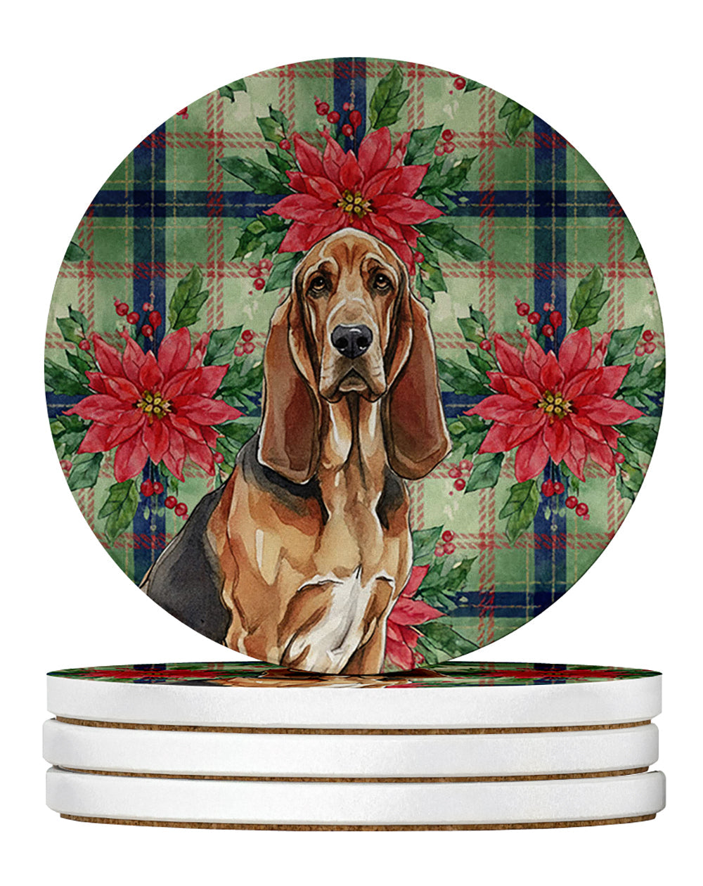 Large Sandstone Coasters Pack of 4 featuring breed specific Bloodhound artwork. Celebrate Christmas with this Christmas Sandstone Coasters Pack of 4. Introducing Caroline's Treasures Large Sandstone Coasters Pack of 4, the perfect addition to your home decor. Each coaster measures nearly 4 inches and is made from absorbent sandstone with a cork backing. Designed and printed in the United States, these coasters feature artwork from Caroline's Treasures' talented artists. Protect your countertops and tables from hot and cold drink condensation with these absorbent coasters. They efficiently absorb moisture, ensuring your surfaces stay dry and clean. Choose from a wide range of designs to update and enhance your decor or give them as a thoughtful gift for any occasion. Cleaning is a breeze�simply wipe the coaster with a damp towel to remove any spills or stains. Each set comes in a brown gift box, making it ready to be wrapped for that special person in your life. These absorbent sandstone coasters also make an excellent housewarming gift, providing both practicality and style. Celebrate birthdays, Mother's Day, Father's Day, Thanksgiving, Christmas, Teacher's Appreciation Day, or simply show someone you care with these versatile and charming coasters. Caroline's Treasures Large Sandstone Coasters Pack of 4 is the perfect happy gift for any occasion.