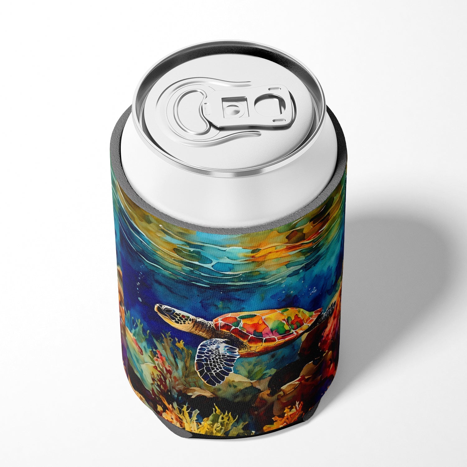 Decorate your space with our Loggerhead Sea Turtle artwork on a Hugger. Introducing our Can or Bottle Hugger, a must-have accessory for your beverage enjoyment. Designed to perfectly fit any standard 12-ounce can, this can cooler is the ideal companion to keep your soda, beer, or any drink of your choice at the perfect temperature. Our can hugger is not just functional, it's a work of art. Featuring full-color artwork that's permanently dyed into the foam, this hugger promises a design that's fade-resistant and made to last, making your beverage stand out in style. The design isn't silk-screened, which ensures the vibrancy of the colors, offering you a long-lasting, appealing aesthetic. What sets our can hugger apart is its high-quality foam fabric, which is not only durable but also machine washable for easy maintenance. Whether you call it a huggie, can coolie, can cozie, or beer holder, this drink sleeve brings style and function together. Proudly designed, printed, and sewn in the USA, our Can or Bottle Hugger is an ideal addition to your beverage experience. Match it with one of our insulated coolers for a complete gift set, adding flair and convenience to your drink enjoyment.