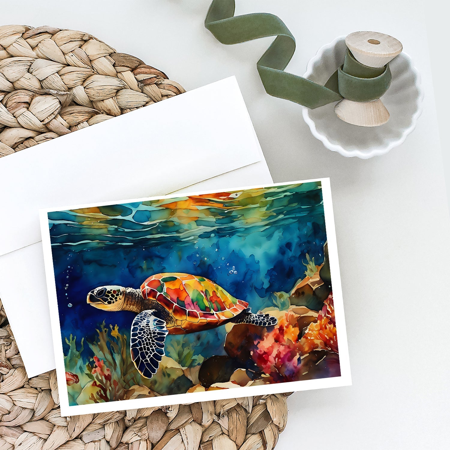 Decorate your space with our Loggerhead Sea Turtle artwork on a . Celebrate special moments with Caroline's Treasures Printed Greeting Card Pack. This pack includes eight beautifully folded 5x7 cards, accompanied by eight matching white envelopes. With blank interiors, these cards provide ample space for your personalized messages and heartfelt holiday greetings. Each card features captivating full-color artwork, meticulously printed in our facility on high-quality 80 lb cover stock or 216 GSM. The super smooth finish of the white cards enhances the visual impact of the artwork, creating a truly stunning presentation. Designed by our talented in-house artists or licensed artists, the artwork on these cards showcases their creativity and attention to detail. From vibrant illustrations to captivating designs, each card tells its own unique story. Whether it's for birthdays, anniversaries, holidays, or any special occasion, Caroline's Treasures Greeting Card Pack is the perfect way to convey your heartfelt sentiments. Share joy, love, and warm wishes with these exquisite cards and make every moment unforgettable.