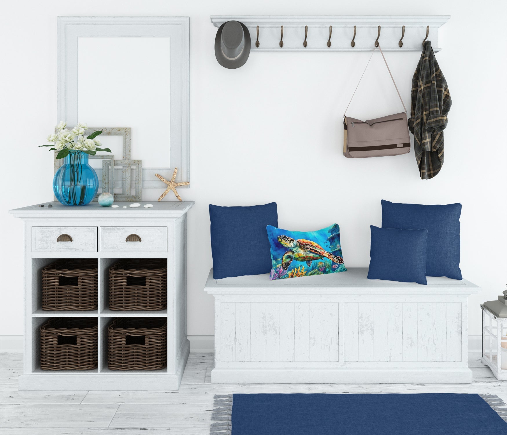 Decorate your space with our Loggerhead Sea Turtle artwork on a Pillow. Embrace the fusion of comfort and style with Caroline's Treasures Fabric Decorative Pillow. This 12x16 inch outdoor pillow is designed to complement your patio furniture, adding a splash of color and artistry to your outdoor setting. Constructed with a 100% Polyester Fabric pillow sham filled with a plush pillow form, this cushion is as comfortable as it is durable. Our outdoor pillow utilizes a novel fabric, meticulously woven for enhanced water resistance. This soft canvas material is equally suited for your indoor couch as well as outdoor settings such as the patio, porch, or veranda. To ensure enduring vibrance, we employ colorfast dyes resistant to fading even when subjected to weather elements. The making of this pillow involves the delicate sewing together of three fabric pieces to create a sham, into which a polyester insert is carefully placed. The result is an overstuffed pillow that tenaciously holds its shape. With both the sham and the pillow insert crafted in the United States, these handmade pillows are a testament to superior local craftsmanship. Note that as these pillows are handmade, sizes may slightly vary, enhancing their unique appeal. Enjoy comfort in style with Caroline's Treasures Fabric Decorative Pillow.