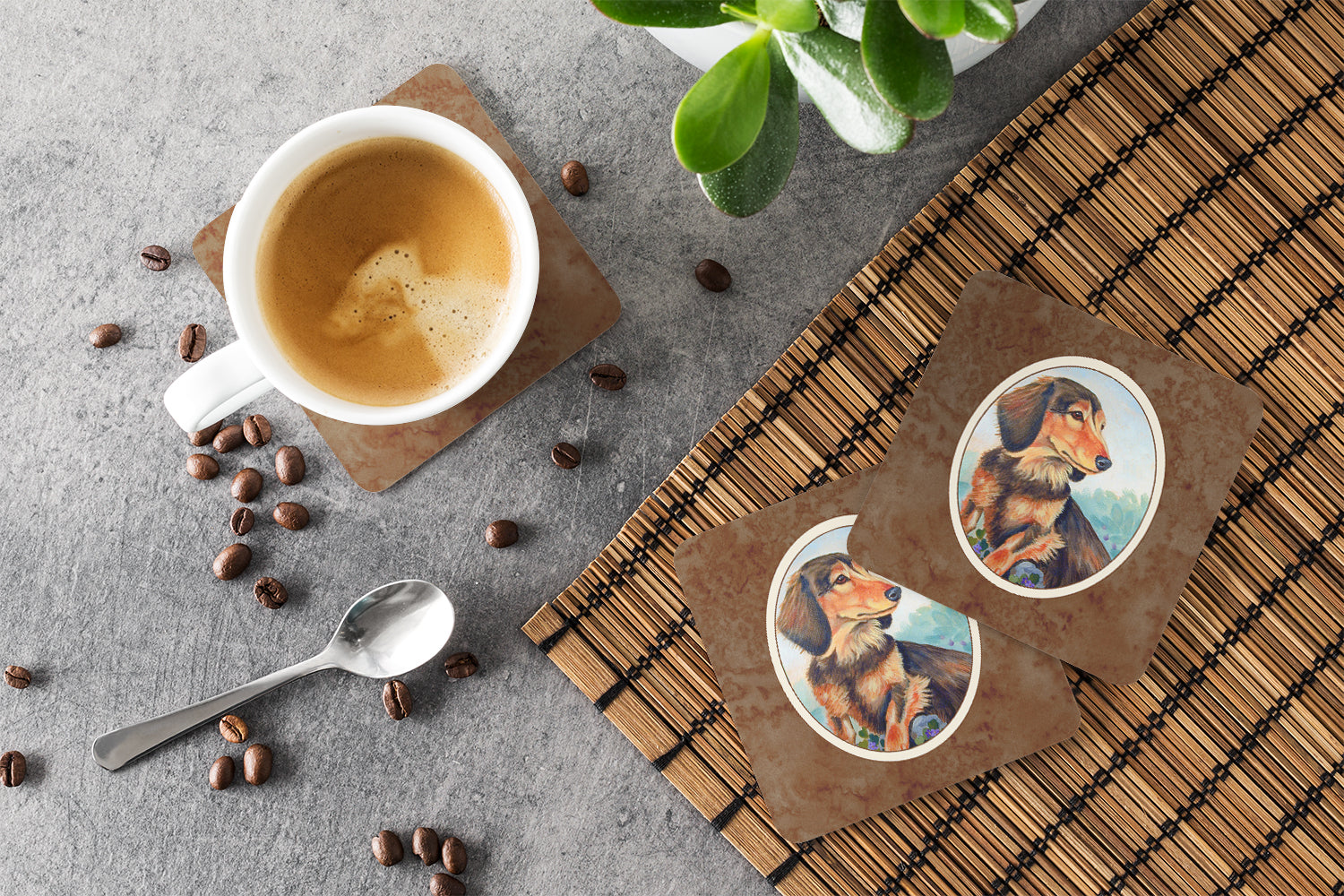 Long Hair Chocolate and Cream Dachshund Foam Coaster  7023FC
