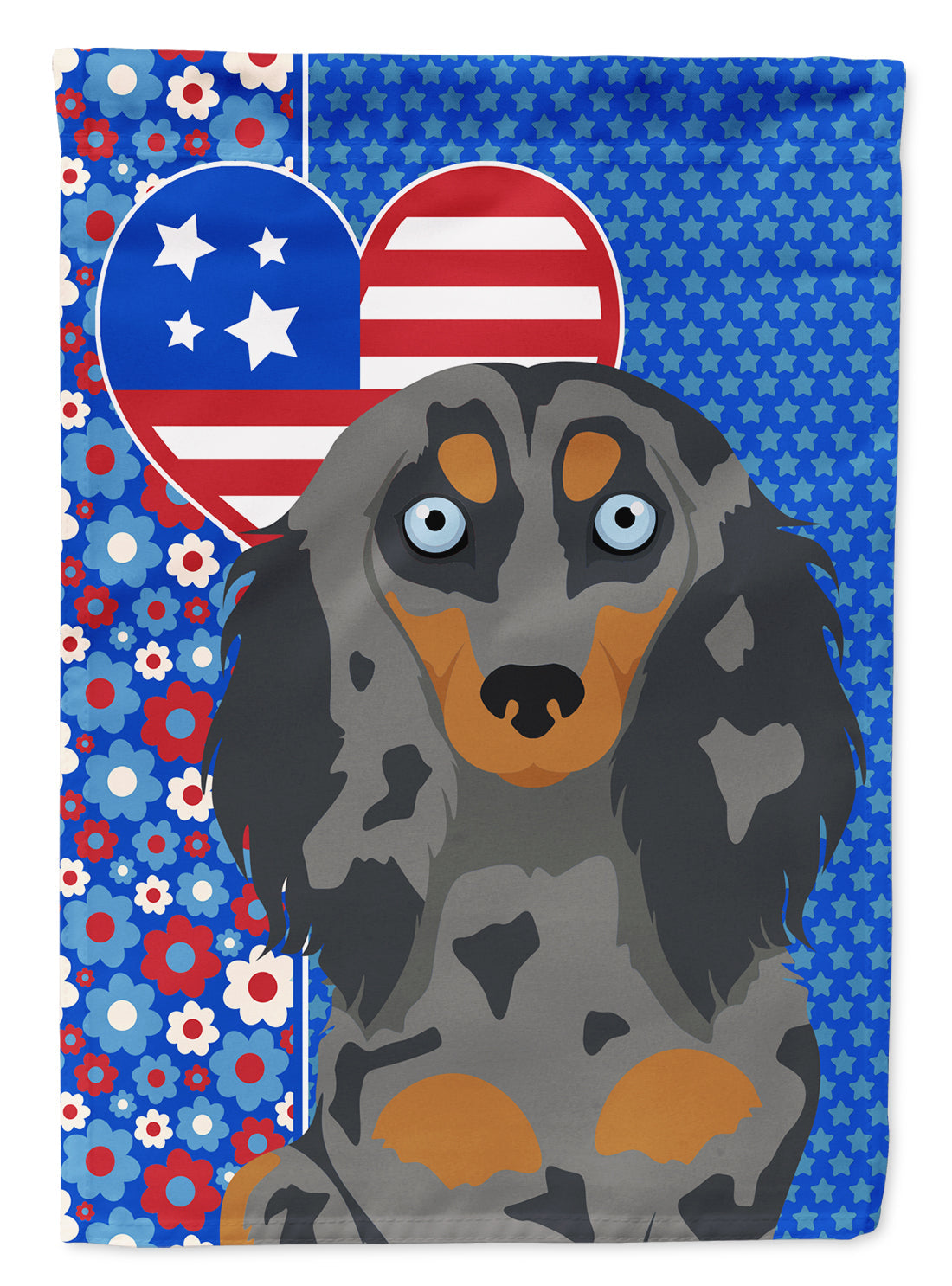 Decorate your space with our Dachshund artwork on a Garden Flag. Enhance the beauty of your garden, patio, or yard with Caroline's Treasures Decorative Garden Flag, proudly made in the USA. Crafted from two pieces of thick, double-sided polyester fabric, this 2-ply garden flag is designed to withstand various weather conditions, making it water-resistant and weatherproof. Featuring correctly readable words on both sides, this garden flag offers a delightful visual experience from any angle. With its heavier weight, it stands out among other garden flags, ensuring stability and durability even in wind, rain, and snow. Measuring approximately 11 1/4 inches by 15 1/2 inches, this flag allows you to personalize your outdoor decor. It comes with a 1 1/2-inch sleeve sewn in, allowing easy attachment to any standard garden flag stand or garden size porch hanger (sold separately). Make a statement in your outdoor space with Caroline's Treasures Decorative Garden Flag, a vibrant and high-quality flag that adds color and personality to your surroundings. Proudly made in the USA, it's a symbol of quality craftsmanship and attention to detail.