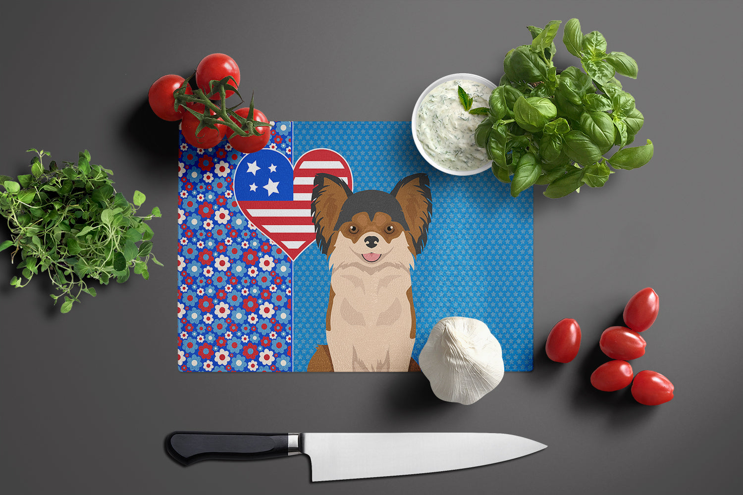Longhaired Black and Red Chihuahua USA American Glass Cutting Boards – Durable, Decorative Kitchen Art Large