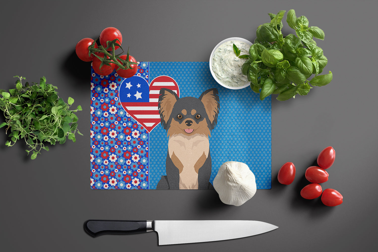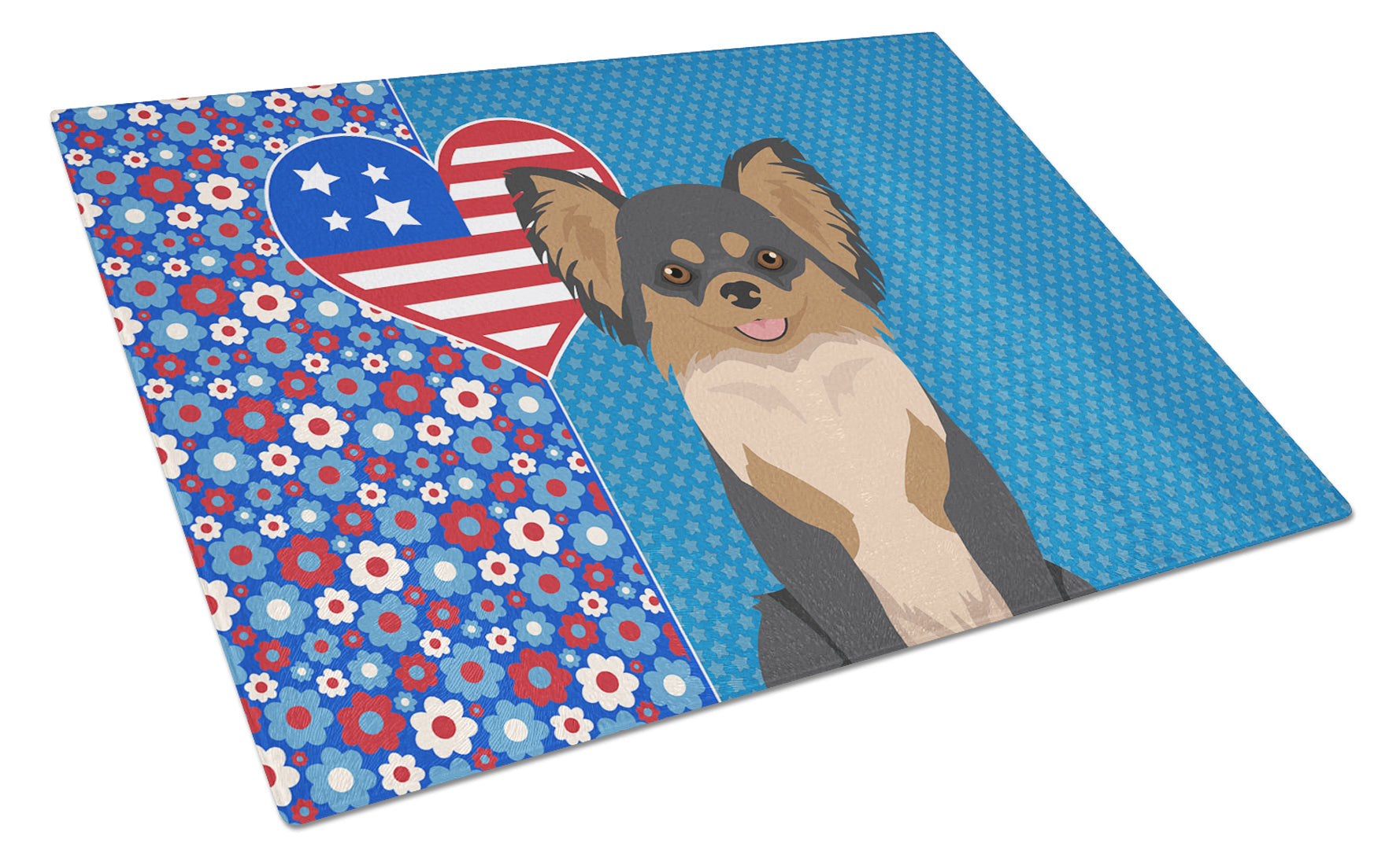 Decorate your space with our Chihuahua artwork on a Cutting Board. Introduce your kitchen to the vibrant, large Decorative Glass Cutting Board from Caroline's Treasures. Crafted from resilient tempered glass, this board is not only a utilitarian necessity but also a colorful art piece. With its generous dimensions of 15 inches in height and 12 inches in length, it offers ample space for all your cutting needs. Every piece showcases captivating artwork from distinguished artists, bringing an aesthetic edge to your kitchen. Beyond its attractive design, this cutting board ensures your countertop stays pristine and unscathed, owing to its heat-resistant properties. Engineered with user convenience in mind, it features non-skid feet for stability, and rounded corners for additional safety. Its robust construction renders it virtually unbreakable, guaranteeing longevity. The board comes with protective feet bumpers, maintaining its position during use. This product is recommended to be hand washed only. Proudly printed and assembled in the United States, this cutting board exemplifies superior craftsmanship. With Caroline's Treasures' Decorative Glass Cutting Board, you're investing in a blend of functionality and artistic flair.