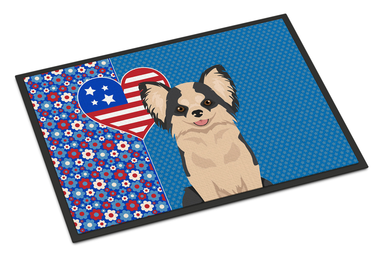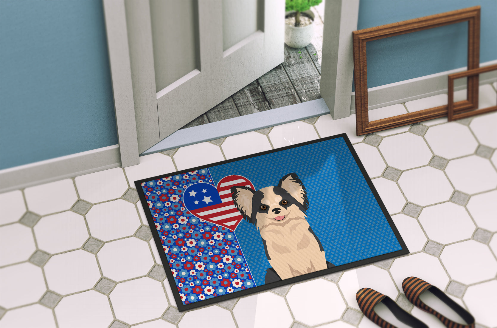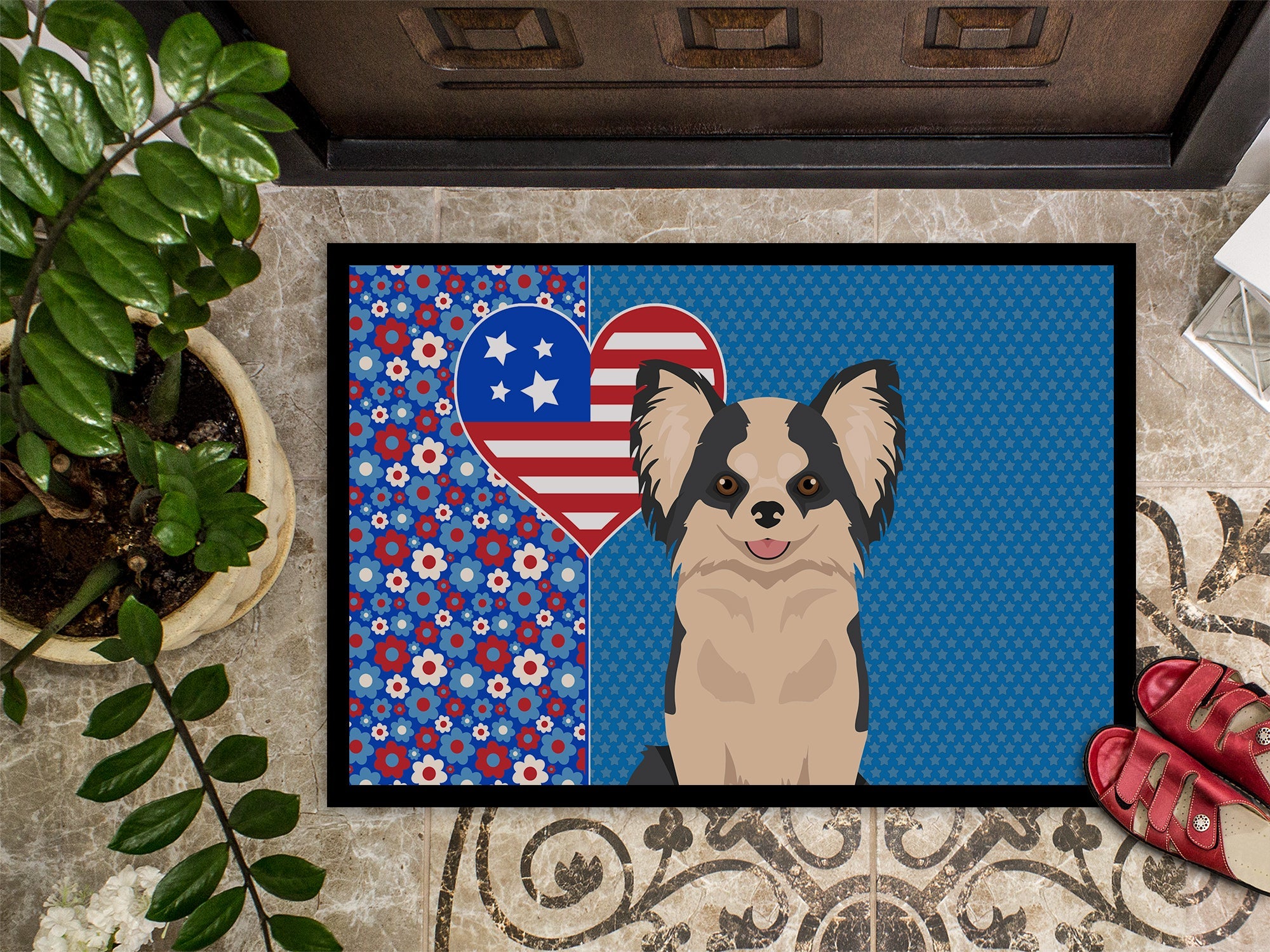 Longhaired Black and White #2 Chihuahua USA American Doormat - 24x36 Decorative Floor Mat – Indoor/Outdoor Rug with Artistic Flair