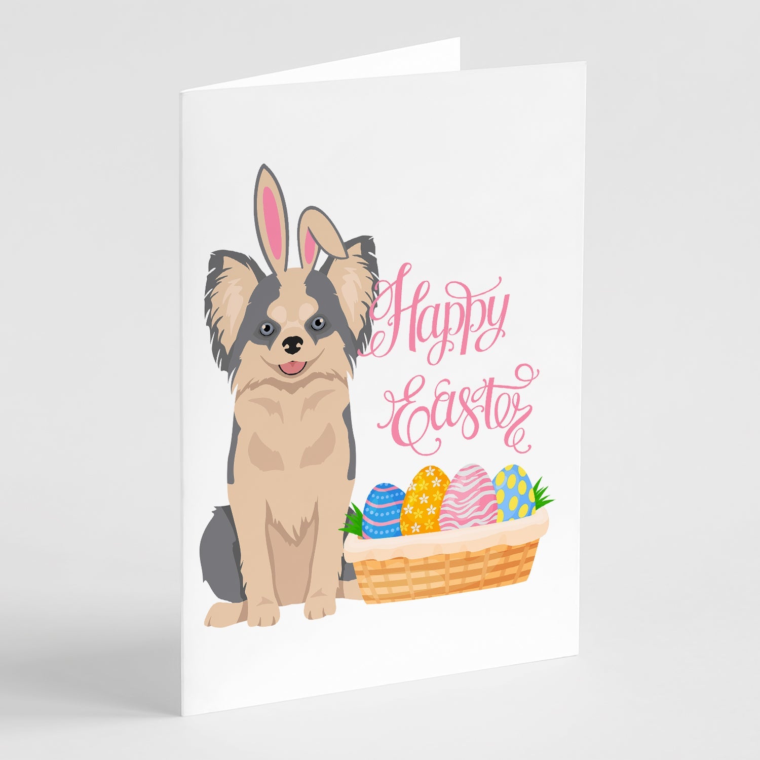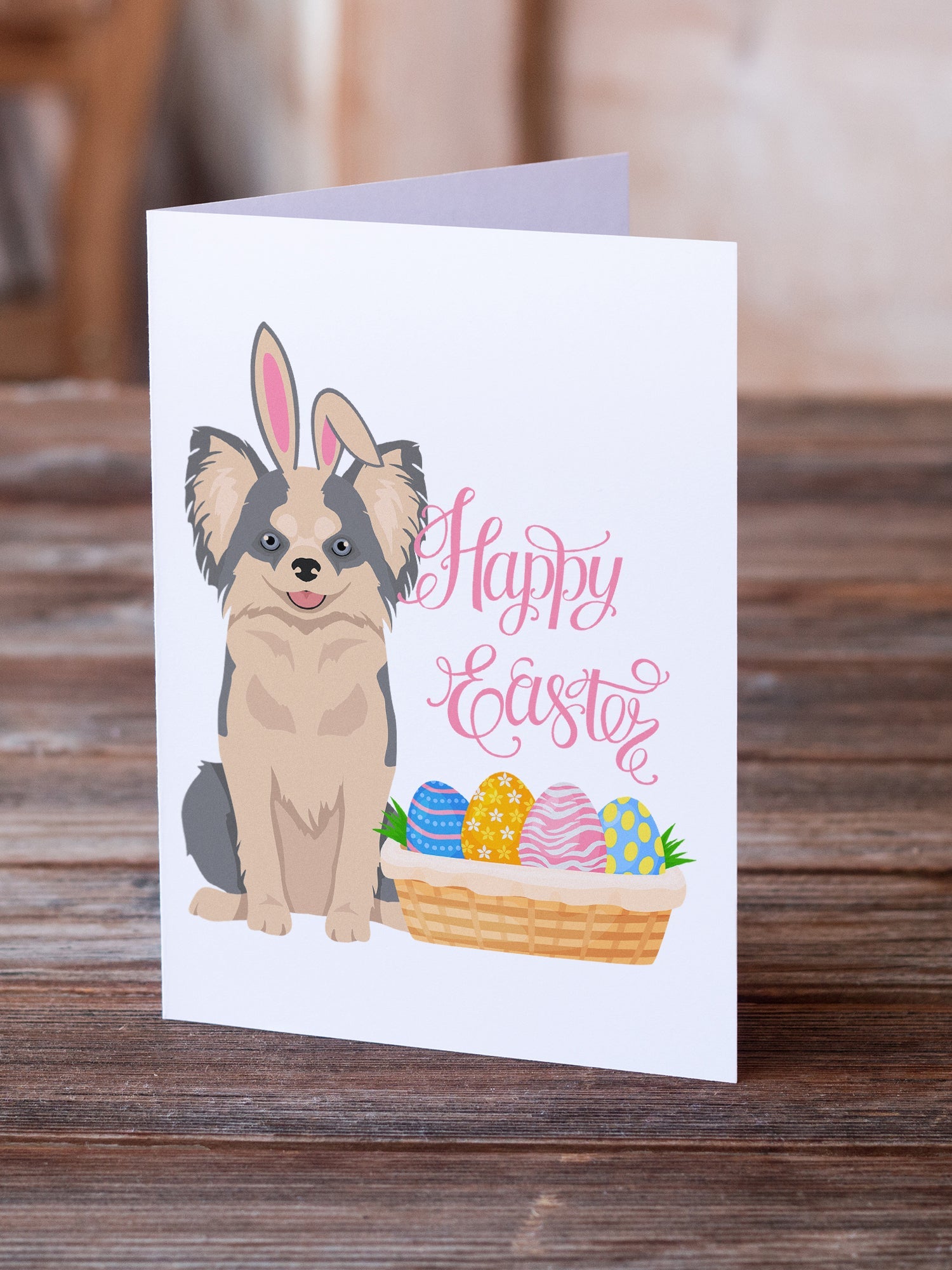 Longhaired Blue and White Chihuahua Easter Greeting Cards -  Blank Note Cards – 8-Pack of Artist-Designed Cards with Envelopes