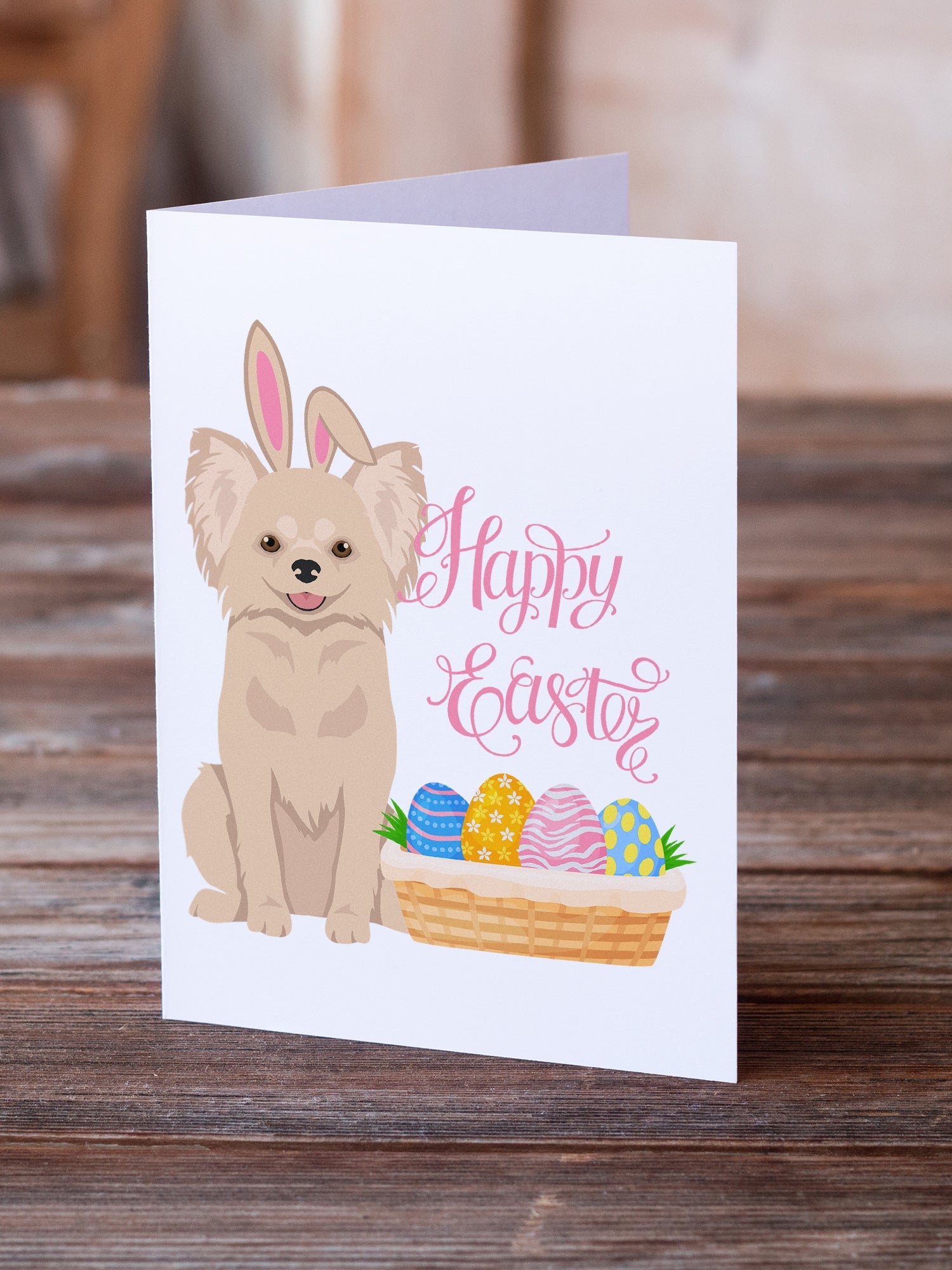 Longhaired Cream Chihuahua Easter Greeting Cards -  Blank Note Cards – 8-Pack of Artist-Designed Cards with Envelopes