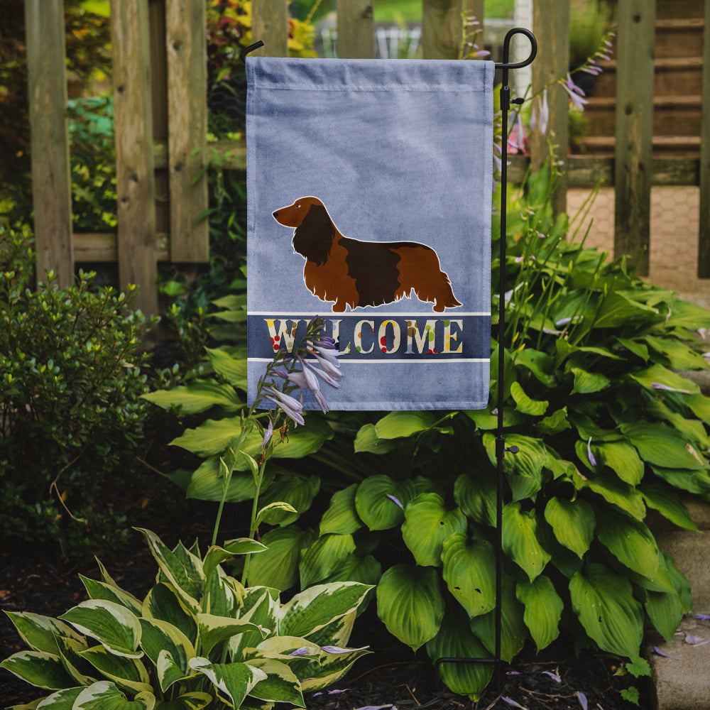 Decorate your space with our Dachshund artwork on a Garden Flag. Enhance the beauty of your garden, patio, or yard with Caroline's Treasures Decorative Garden Flag, proudly made in the USA. Crafted from two pieces of thick, double-sided polyester fabric, this 2-ply garden flag is designed to withstand various weather conditions, making it water-resistant and weatherproof. Featuring correctly readable words on both sides, this garden flag offers a delightful visual experience from any angle. With its heavier weight, it stands out among other garden flags, ensuring stability and durability even in wind, rain, and snow. Measuring approximately 11 1/4 inches by 15 1/2 inches, this flag allows you to personalize your outdoor decor. It comes with a 1 1/2-inch sleeve sewn in, allowing easy attachment to any standard garden flag stand or garden size porch hanger (sold separately). Make a statement in your outdoor space with Caroline's Treasures Decorative Garden Flag, a vibrant and high-quality flag that adds color and personality to your surroundings. Proudly made in the USA, it's a symbol of quality craftsmanship and attention to detail.