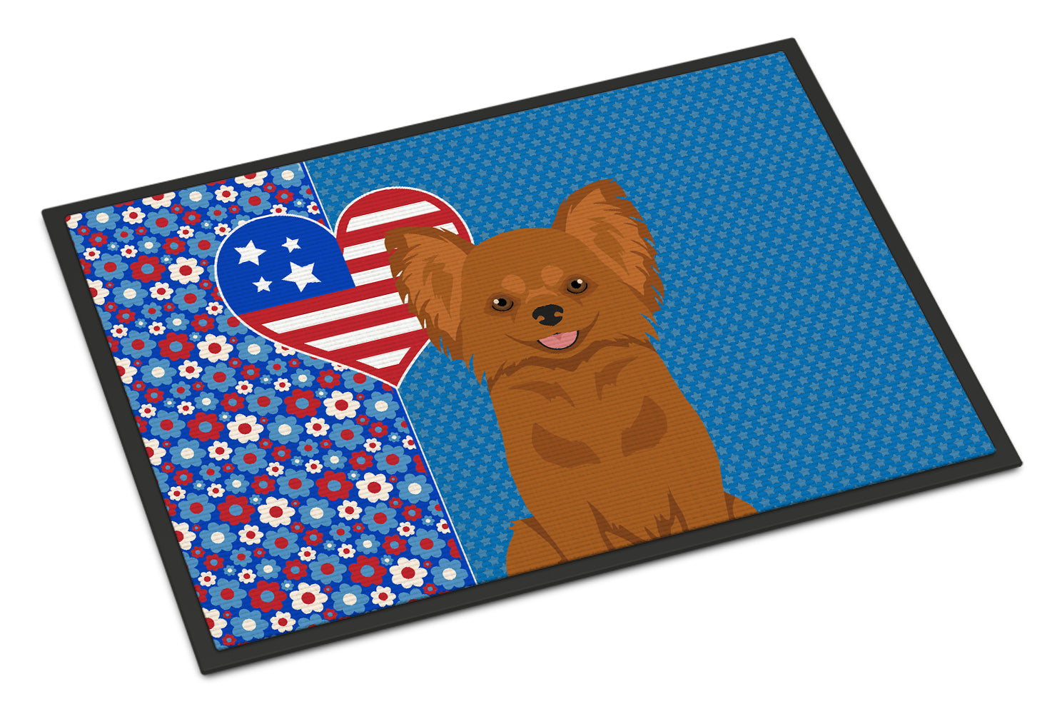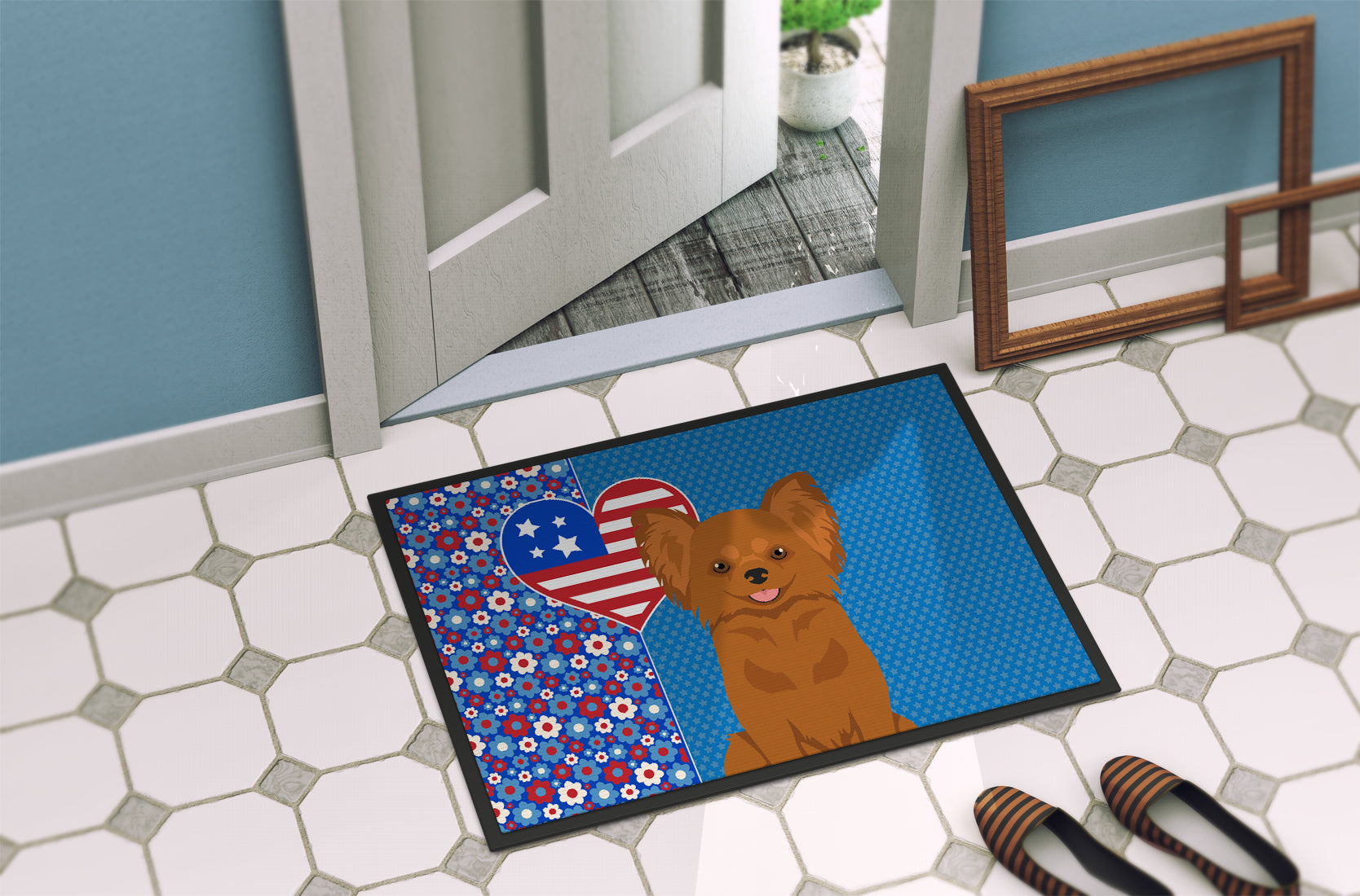 Decorate your space with our Chihuahua artwork on a Doormat. Welcome your guests in style with our Artwork Door Mat, designed to withstand almost any weather condition. This mat, measuring approximately 24 by 36 inches, is held together by durable black binding tape. Its top layer, composed of polyester felt, is dyed with the eye-catching image you see on the mat. A few layers below provide the mat with stability, while its rubber bottom is stamped to help prevent slipping and ensures safety. Our mat works wonderfully as both an indoor or outdoor door mat. For cleaning, simply hose it off with water or use a power washer - no need for any cleaner that produces suds. Avoid scrubbing with a brush, instead, opt for the vacuum on floor setting. Designed manufactured and printed in the USA, this mat is a perfect addition to your porch, outdoor kitchen, entryway, or any indoor space. Its unique design makes it a charming decorative rug that greets your guests and adds a stylish touch to your home decor.