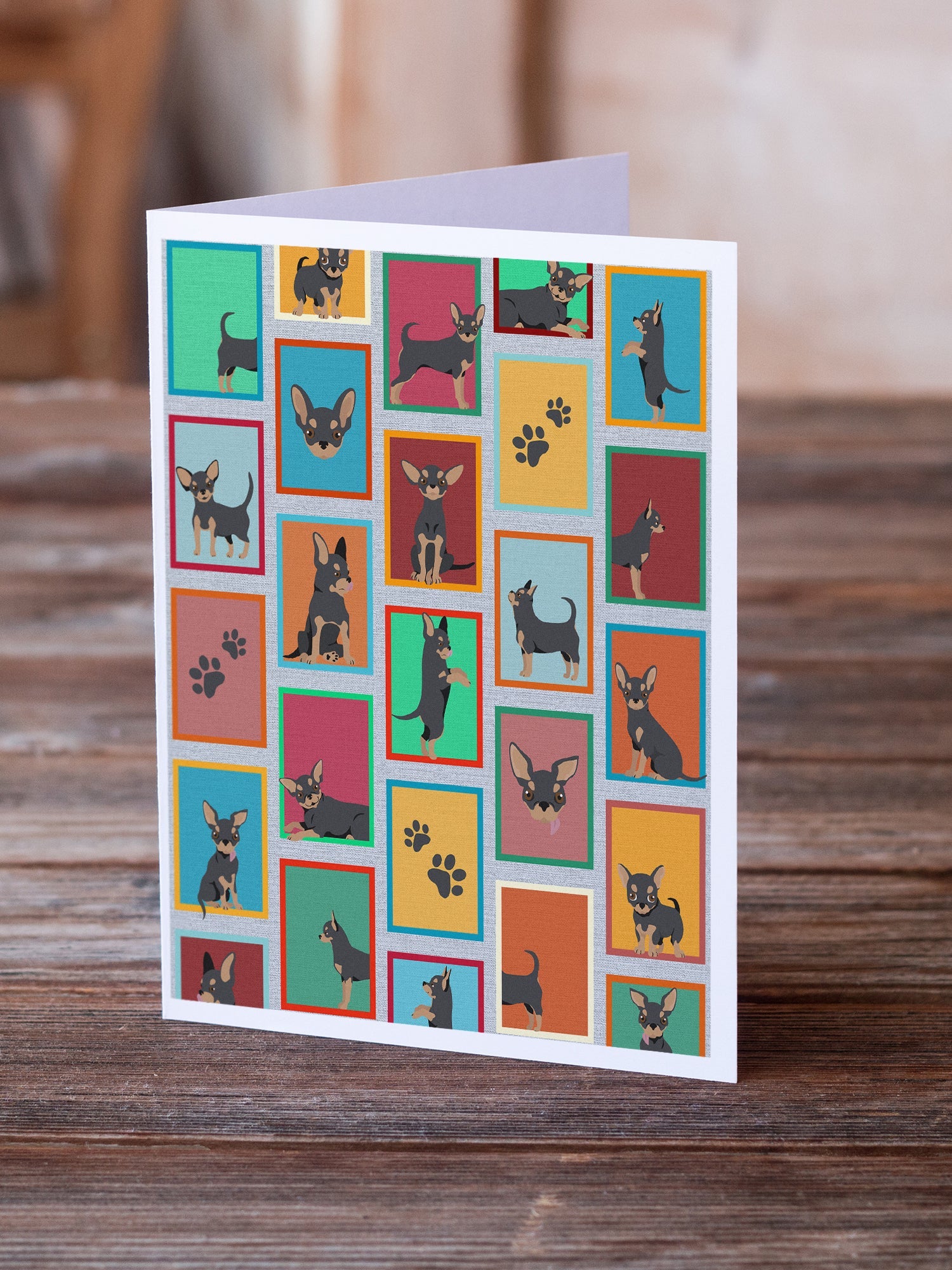 Lots of Black and Tan Chihuahua Greeting Cards -  Blank Note Cards – 8-Pack of Artist-Designed Cards with Envelopes