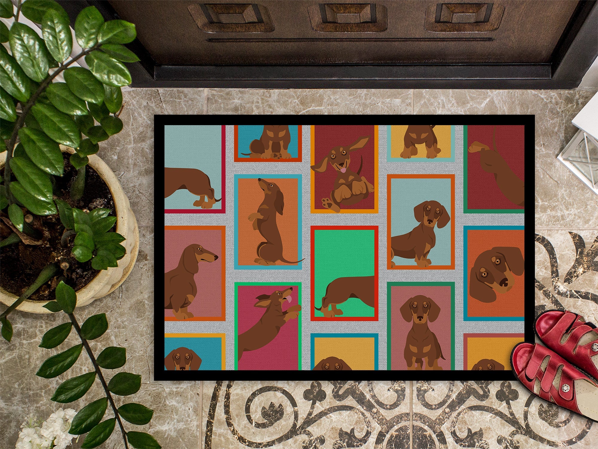 Lots of Chocolate and Tan Dachshund Doormat - 18x27 Decorative Floor Mat – Indoor/Outdoor Rug with Artistic Flair