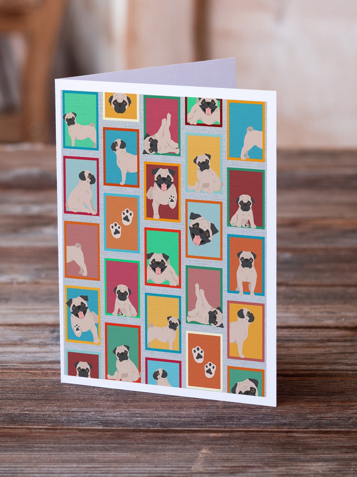 Decorate your space with our Pug artwork on a . Celebrate special moments with Caroline's Treasures Printed Greeting Card Pack. This pack includes eight beautifully folded 5x7 cards, accompanied by eight matching white envelopes. With blank interiors, these cards provide ample space for your personalized messages and heartfelt holiday greetings. Each card features captivating full-color artwork, meticulously printed in our facility on high-quality 80 lb cover stock or 216 GSM. The super smooth finish of the white cards enhances the visual impact of the artwork, creating a truly stunning presentation. Designed by our talented in-house artists or licensed artists, the artwork on these cards showcases their creativity and attention to detail. From vibrant illustrations to captivating designs, each card tells its own unique story. Whether it's for birthdays, anniversaries, holidays, or any special occasion, Caroline's Treasures Greeting Card Pack is the perfect way to convey your heartfelt sentiments. Share joy, love, and warm wishes with these exquisite cards and make every moment unforgettable.