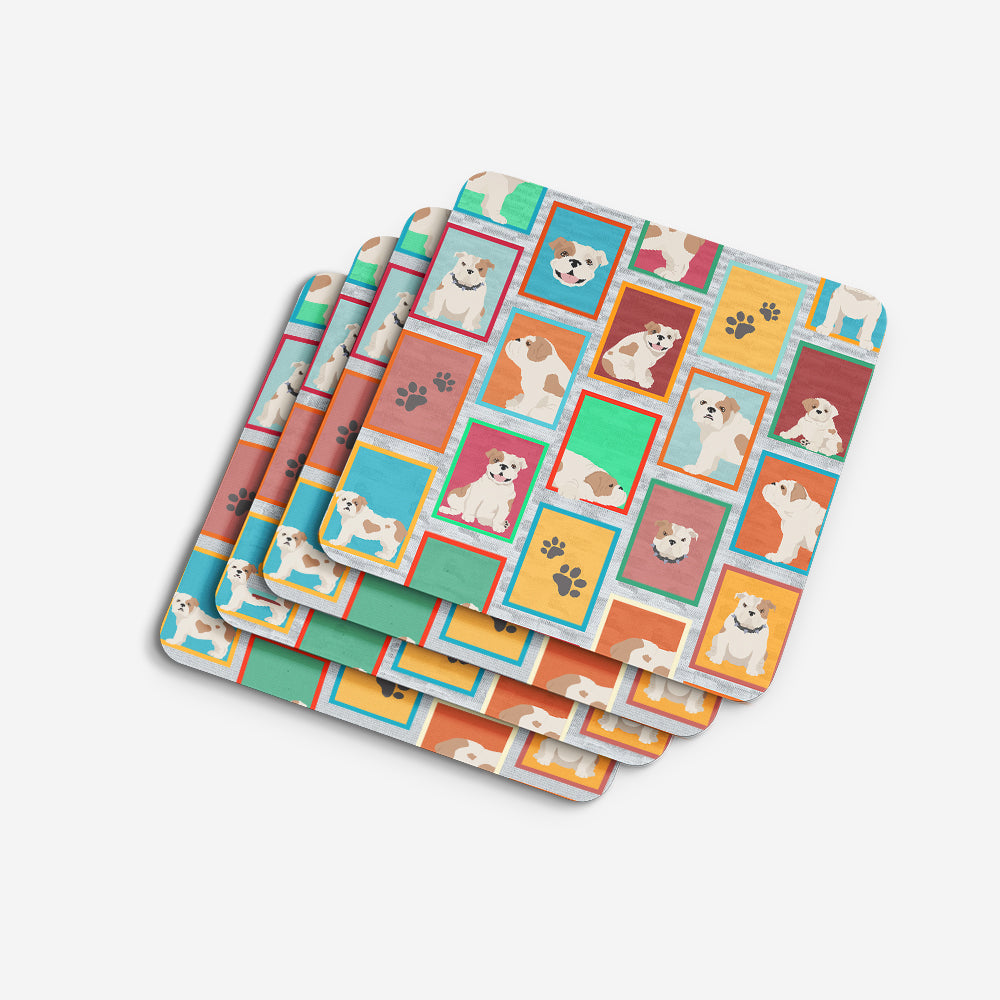 Decorate your space with our English Bulldog artwork on a Coaster set. Presenting our Set of 4 Foam Coasters, a stylish and practical addition to your table setting. Each square coaster, measuring 3 1/2 inches by 3 1/2 inches, is perfectly sized to accommodate various drinkware, from coffee mugs to tumblers. These coasters stand out with their full-color artwork, permanently dyed onto the material for a vibrant and fade-resistant finish. They're not just functional, they're a fashionable statement, adding a touch of flair to any gathering or event. Our foam coasters serve a dual purpose - they protect your table from water stains and are perfect for both hot and cold drinks. The material used is similar to that of our high-quality mouse pads, ensuring durability and heat resistance. These coasters are easy to maintain - simply wash them in the top of your dishwasher and lay flat to dry. The design won't come off, ensuring they retain their vivid colors for years. Pair them with one of our insulated coolers or huggers for a cohesive, thoughtful gift set. Enhance your beverage experience with our Set of 4 Foam Coasters.