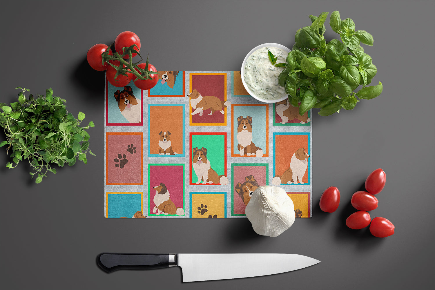 Decorate your space with our Sheltie artwork on a Cutting Board. Introduce your kitchen to the vibrant, large Decorative Glass Cutting Board from Caroline's Treasures. Crafted from resilient tempered glass, this board is not only a utilitarian necessity but also a colorful art piece. With its generous dimensions of 15 inches in height and 12 inches in length, it offers ample space for all your cutting needs. Every piece showcases captivating artwork from distinguished artists, bringing an aesthetic edge to your kitchen. Beyond its attractive design, this cutting board ensures your countertop stays pristine and unscathed, owing to its heat-resistant properties. Engineered with user convenience in mind, it features non-skid feet for stability, and rounded corners for additional safety. Its robust construction renders it virtually unbreakable, guaranteeing longevity. The board comes with protective feet bumpers, maintaining its position during use. This product is recommended to be hand washed only. Proudly printed and assembled in the United States, this cutting board exemplifies superior craftsmanship. With Caroline's Treasures' Decorative Glass Cutting Board, you're investing in a blend of functionality and artistic flair.