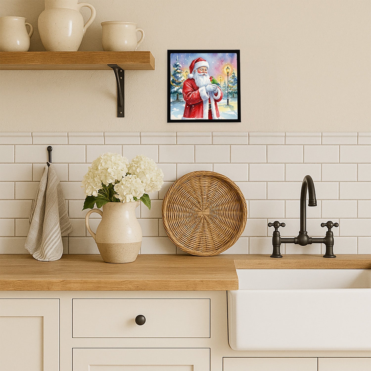 Framed Metal Print featuring breed specific Lovebird artwork. Celebrate Christmas with this Christmas Framed Metal Print. Looking for wall art that’s stylish, safe, and made to last? Our 8x8 Framed Metal Prints are designed with modern living in mind. Each piece features original artwork printed on durable aluminum, set in a sleek frame that measures 3/4 inch deep for a clean, contemporary finish. Unlike glass prints, these are lightweight, shatter-free, and family-safe. Perfect for kitchens, bathrooms, or covered porches where traditional décor might not hold up. The built-in sawtooth hanger molded into the back makes it easy to hang right out of the box—just use your own nails or screws. Cleaning is simple too: a quick wipe with a damp cloth and mild soap keeps your artwork looking vibrant. Proudly made in Alabama, every print supports our community of artists while adding personality and charm to your home.