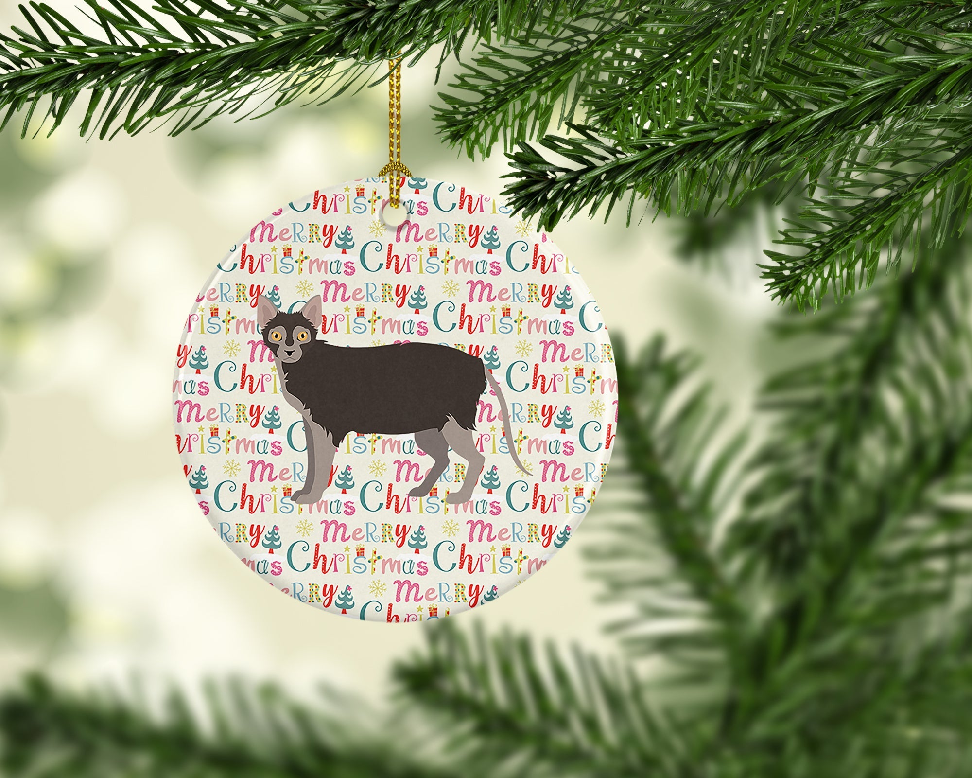 Decorate your space with our Christmas Lykoi artwork on a Ornament. Add a touch of personalized charm to your Christmas tree this holiday season with our Ceramic Ornament. Measuring 2.8125 inches in diameter, this round porcelain ornament beautifully reflects your festive lights, enhancing your holiday decor. The gloss surface sets off the vibrant, full-color artwork contributed by one of our talented artists, bringing a pop of color and joy to your tree. This Ceramic Ornament doesn't stop at being merely decorative. The white back is designed for personalization. Write a heartfelt message, mark a special year, or inscribe a date with a paint pen or a permanent marker to create a treasured memento. Please ensure you allow any personalization to dry thoroughly before handling to maintain the pristine finish. Included with the ornament is a delicate gold cord for easy hanging. Made in the USA, this Ceramic Ornament makes an exceptional gift for a pet sitter, teacher, family member, or anyone you wish to share a little Christmas magic with. With its blend of style, charm, and personal touch, it's a meaningful addition to any Christmas tree.