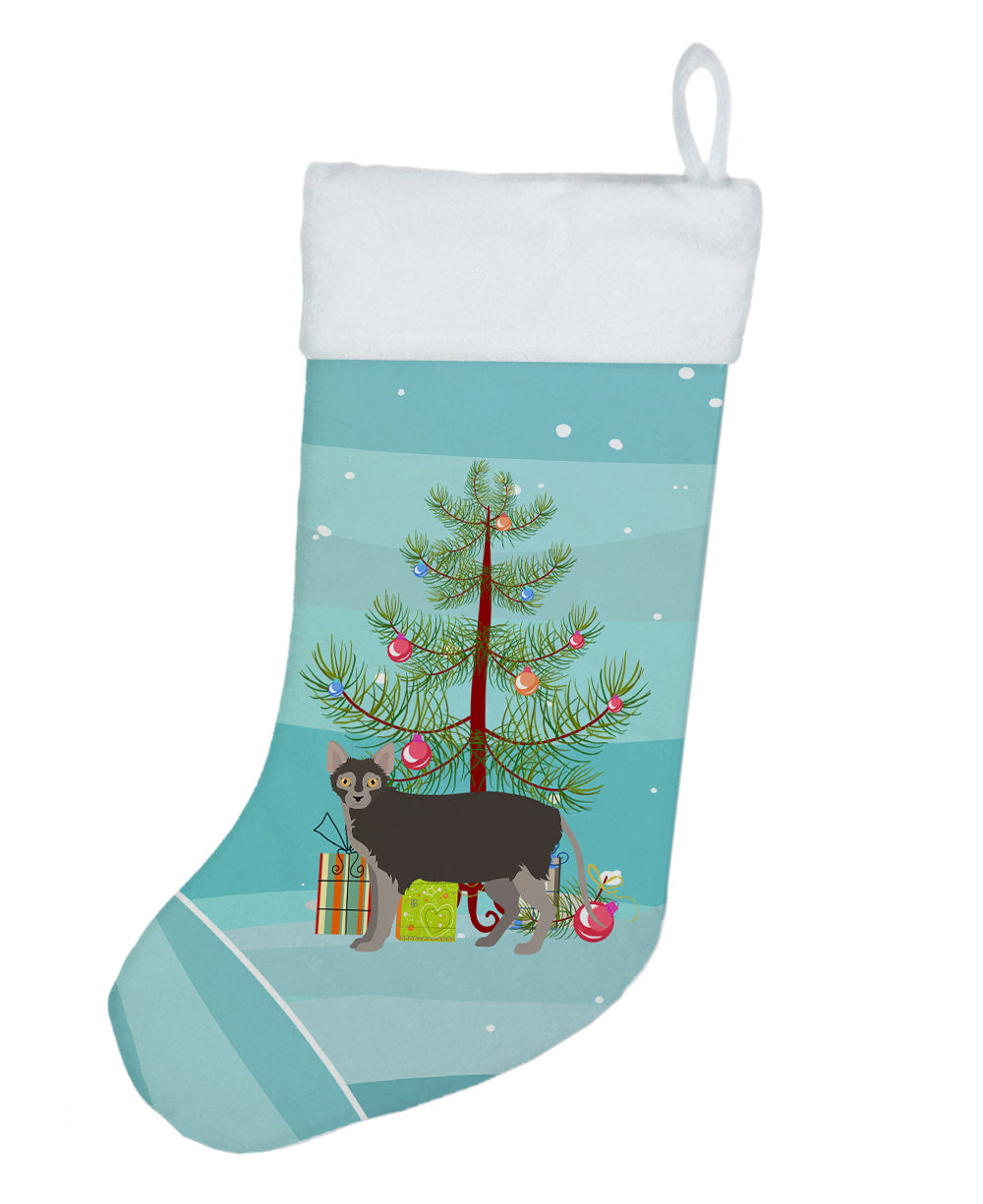 Decorate your space with our Christmas Lykoi artwork on a Stocking. Bring the warmth of the festive season into your home with our luxurious Christmas Stocking. Designed to impress, this beautiful stocking is crafted from 100% polyester suede, delivering both superior softness and long-lasting durability. Measuring approximately 18 inches in height and 11 inches in width, it boasts generous space for a delightful assortment of Santa's gifts. What sets our Christmas Stocking apart is the exquisite design that is printed on both sides. Whether you hang it on the mantel or from a stocking hanger, the charming holiday print remains visible, adding a festive spirit to your décor from any direction. The stocking features a robust hanging tab that's crafted from the same suede fabric, guaranteeing secure hanging during the holiday excitement. An added bonus? This Christmas Stocking is completely machine washable. After the season's festivities, simply wash it, lay flat or hang to dry, and it's ready for the next holiday season. Proudly designed, printed and sewn in the United States, our stocking makes a stylish addition to your Christmas décor or a thoughtful gift for loved ones. Cherish the spirit of Christmas with our beautifully crafted, double-sided, easy-care stocking.