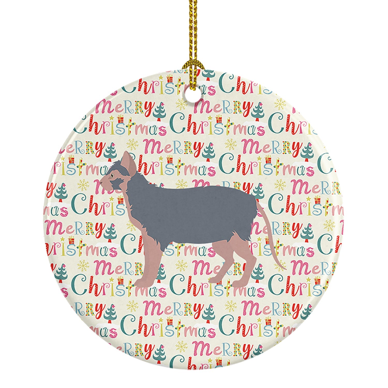 Decorate your space with our Christmas Lykoi artwork on a Ornament. Add a touch of personalized charm to your Christmas tree this holiday season with our Ceramic Ornament. Measuring 2.8125 inches in diameter, this round porcelain ornament beautifully reflects your festive lights, enhancing your holiday decor. The gloss surface sets off the vibrant, full-color artwork contributed by one of our talented artists, bringing a pop of color and joy to your tree. This Ceramic Ornament doesn't stop at being merely decorative. The white back is designed for personalization. Write a heartfelt message, mark a special year, or inscribe a date with a paint pen or a permanent marker to create a treasured memento. Please ensure you allow any personalization to dry thoroughly before handling to maintain the pristine finish. Included with the ornament is a delicate gold cord for easy hanging. Made in the USA, this Ceramic Ornament makes an exceptional gift for a pet sitter, teacher, family member, or anyone you wish to share a little Christmas magic with. With its blend of style, charm, and personal touch, it's a meaningful addition to any Christmas tree.