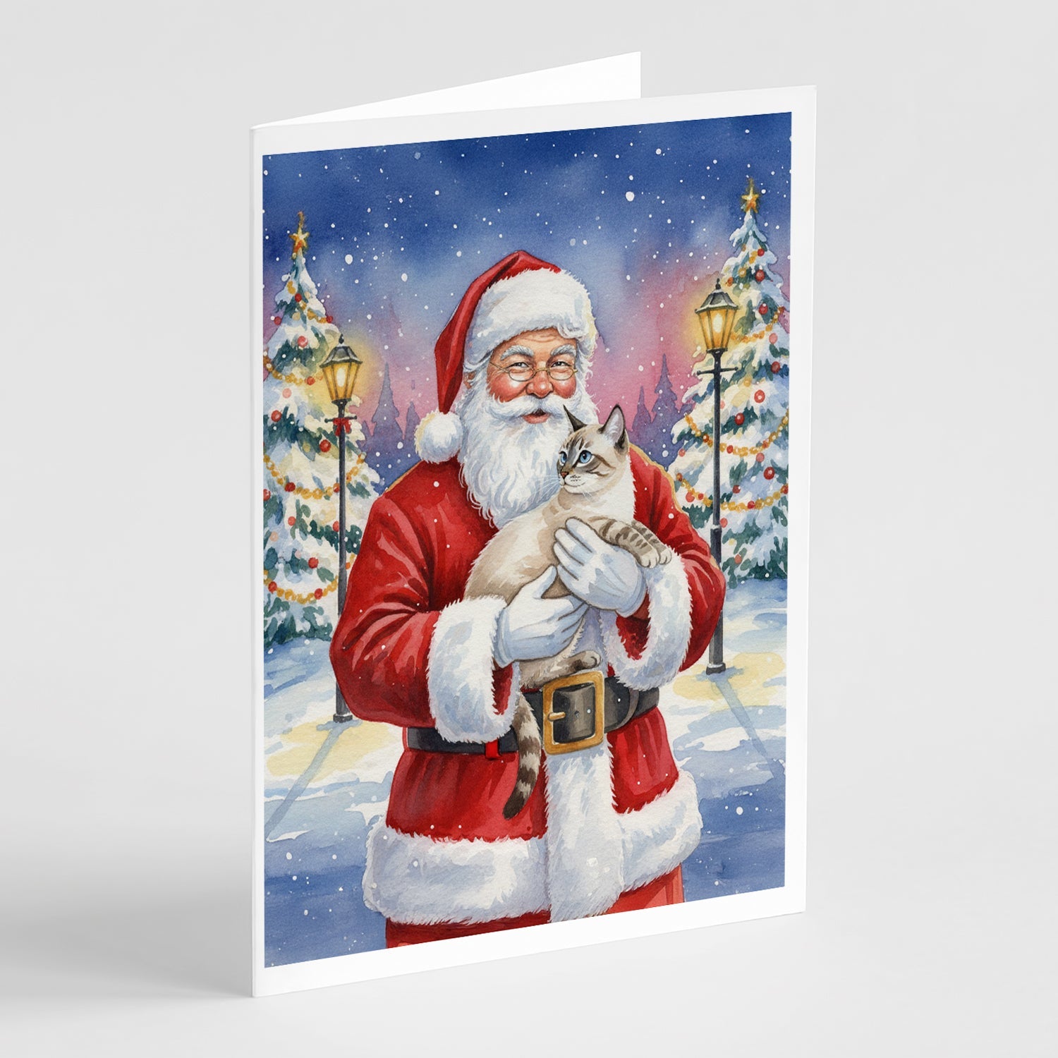 Greeting Cards Pack of 8 featuring breed specific Lynx Point artwork. Celebrate Christmas with this Christmas . Celebrate special moments with Caroline's Treasures Printed Greeting Card Pack. This pack includes eight beautifully folded 5x7 cards, accompanied by eight matching white envelopes. With blank interiors, these cards provide ample space for your personalized messages and heartfelt holiday greetings. Each card features captivating full-color artwork, meticulously printed in our facility on high-quality 80 lb cover stock or 216 GSM. The super smooth finish of the white cards enhances the visual impact of the artwork, creating a truly stunning presentation. Designed by our talented in-house artists or licensed artists, the artwork on these cards showcases their creativity and attention to detail. From vibrant illustrations to captivating designs, each card tells its own unique story. Whether it's for birthdays, anniversaries, holidays, or any special occasion, Caroline's Treasures Greeting Card Pack is the perfect way to convey your heartfelt sentiments. Share joy, love, and warm wishes with these exquisite cards and make every moment unforgettable.