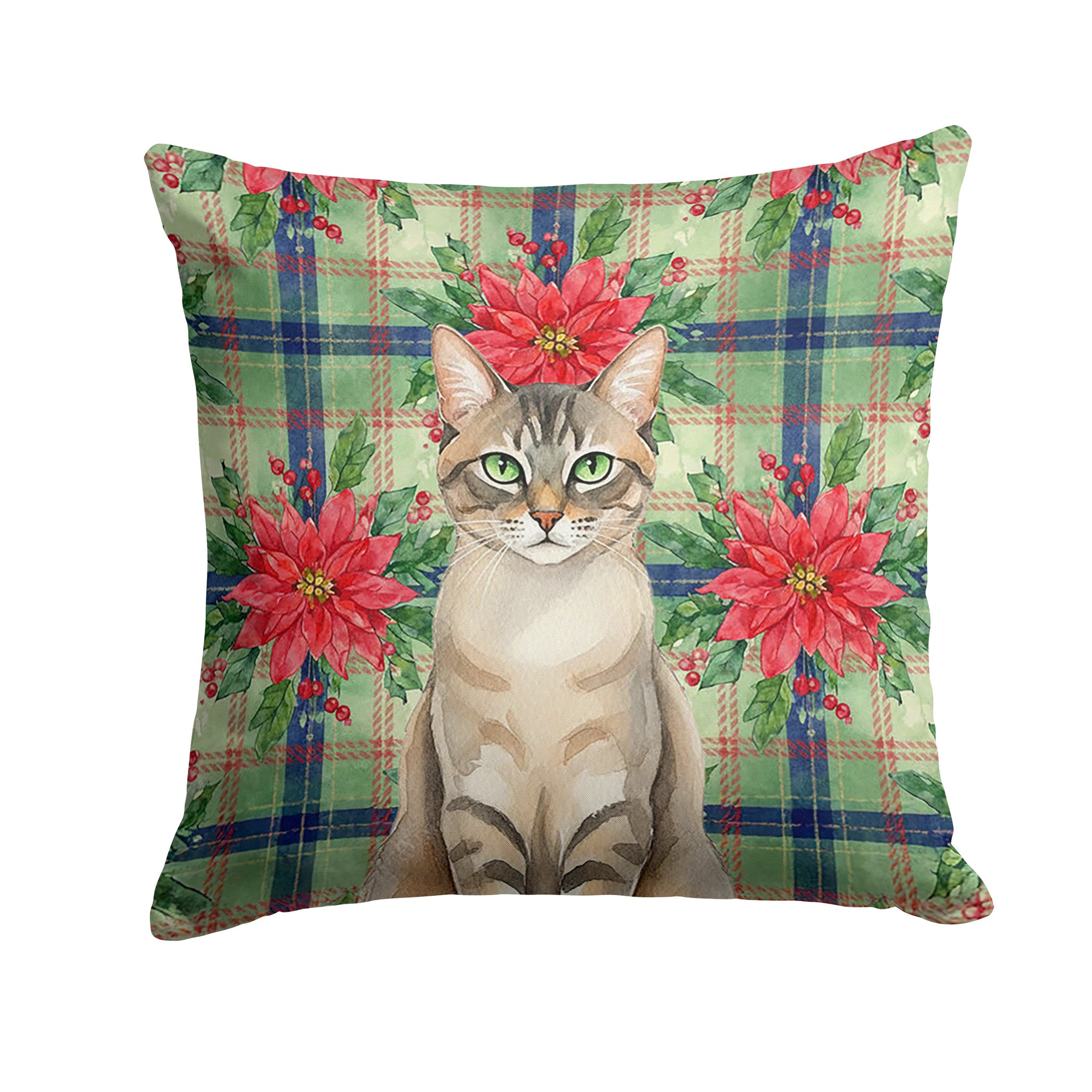 Throw Pillow featuring breed specific Lynx Point Tabby artwork. Celebrate Christmas with this Christmas Pillow. Add a touch of vibrancy and comfort to your outdoor seating with Caroline's Treasures Fabric Decorative Pillow. Measuring approximately 14 inches by 14 inches, this outdoor pillow is crafted to elevate the appeal of your patio furniture, infusing it with vivid color and artistic flair. The pillow includes a 100% Polyester Fabric sham filled with a quality pillow form to provide superior comfort. Innovatively made from our brand new material, specifically woven for its water resistance, this pillow is designed for durability. The soft canvas fabric offers versatility in use, fit for your indoor couch or your outdoor patio, porch, or veranda. The fabric is dyed with colorfast dyes built for resilience against weather conditions, ensuring the pillow retains its beauty over time. Constructed by sewing three fabric pieces to create a sham, the polyester insert is then nestled inside to form the pillow, resulting in an overstuffed pillow that maintains its shape. Both the sham and the pillow insert are proudly made in the United States. As the pillows are handcrafted, there may be minor variations in size, further enhancing their unique charm. Experience comfort in style with Caroline's Treasures Fabric Decorative Pillow.