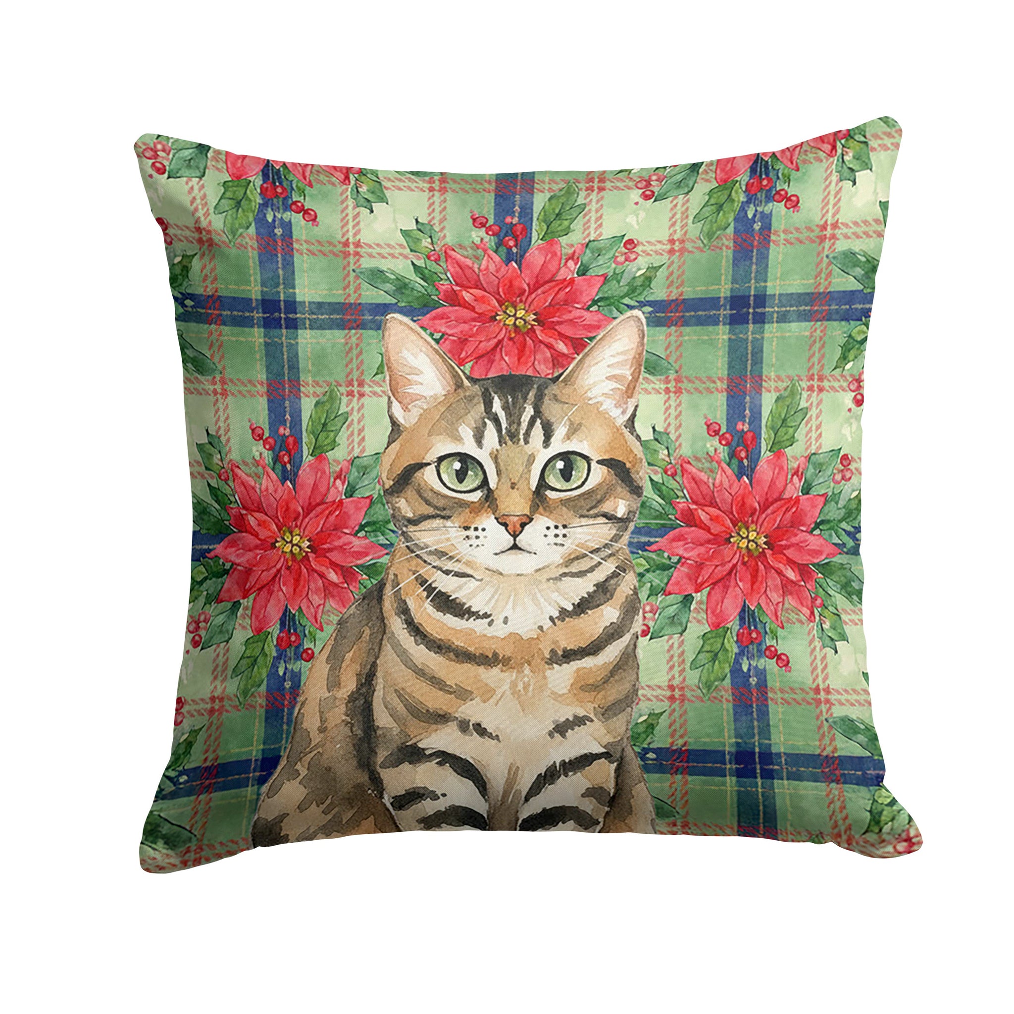 Throw Pillow featuring breed specific Mackerel Tabby Brown artwork. Celebrate Christmas with this Christmas Pillow. Revitalize your outdoor or indoor living space with Caroline's Treasures 18x18 Fabric Decorative Pillow. With a generously sized dimension of approximately 18 inches by 18 inches, this pillow makes a comfortable and aesthetic addition to any seating area. Made from a unique, water-resistant material developed by Caroline's Treasures, the pillow sham is 100% polyester fabric that's durable and ready to weather any condition. Its vibrant, full-color artwork will not fade over time as it is dyed with color-fast dyes. Whether you place it on your patio furniture, porch, veranda, or indoor couch, its soft canvas fabric ensures a cozy experience. The pillow is handcrafted in the United States, featuring a sham created from three pieces of fabric and a polyester insert for enduring shape and overstuffed comfort. Despite being robustly built to endure the outdoors, it is as soft and snug as your favorite indoor cushions. Please note, as all our pillows are handmade, sizes may vary slightly, adding to the charm of this unique decorative item.