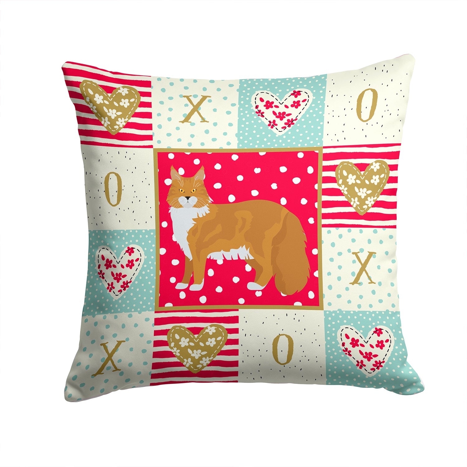 Decorate your space with our Valentine's Day Maine Coon artwork on a Pillow. Add a touch of vibrancy and comfort to your outdoor seating with Caroline's Treasures Fabric Decorative Pillow. Measuring approximately 14 inches by 14 inches, this outdoor pillow is crafted to elevate the appeal of your patio furniture, infusing it with vivid color and artistic flair. The pillow includes a 100% Polyester Fabric sham filled with a quality pillow form to provide superior comfort. Innovatively made from our brand new material, specifically woven for its water resistance, this pillow is designed for durability. The soft canvas fabric offers versatility in use, fit for your indoor couch or your outdoor patio, porch, or veranda. The fabric is dyed with colorfast dyes built for resilience against weather conditions, ensuring the pillow retains its beauty over time. Constructed by sewing three fabric pieces to create a sham, the polyester insert is then nestled inside to form the pillow, resulting in an overstuffed pillow that maintains its shape. Both the sham and the pillow insert are proudly made in the United States. As the pillows are handcrafted, there may be minor variations in size, further enhancing their unique charm. Experience comfort in style with Caroline's Treasures Fabric Decorative Pillow.
