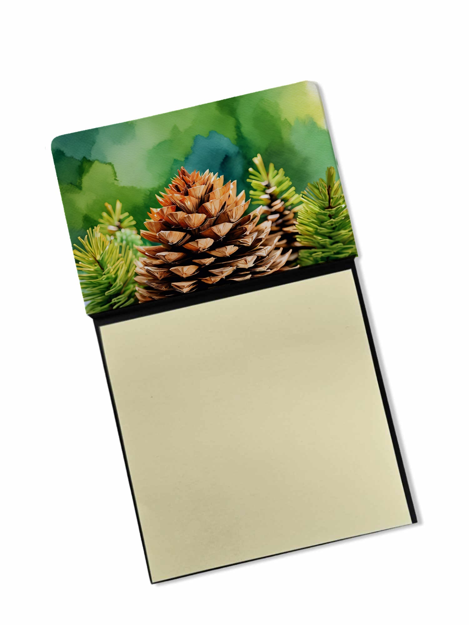Decorate your space with our Maine White Pine Cone and Tassels artwork on a Sticky Note Holder. Add a touch of creativity and flair to your desk with the Decorative Sticky Note Holder from Caroline's Treasures. This uniquely designed sticky note dispenser will not only keep your notes in one place but also add an artistic element to your workspace. The top of the holder features beautiful artwork that is sure to catch the eye. Crafted for convenience, this sticky note holder comes with a small pad of 3-inch x 3-inch sticky notes at the bottom. The holder is designed for easy refilling; simply remove the last sheet of a new sticky note pad and stick it onto the board. This feature ensures you will always have sticky notes at your disposal. This Sticky Note Holder makes a perfect gift. Be it for your colleagues at work, your Facebook friends, or even your dog groomer or hairdresser, this versatile product fits the bill. You can use it for making grocery lists, leaving notes for loved ones, or for jotting down important reminders. The bottom board is rigid and can be magnetized by adding a business card size magnet to the back (sold separately). This makes it even more versatile, allowing you to place it on a refrigerator or any other magnetic surface. With this Sticky Note Holder, you're not only organizing your notes, but also personalizing your space.