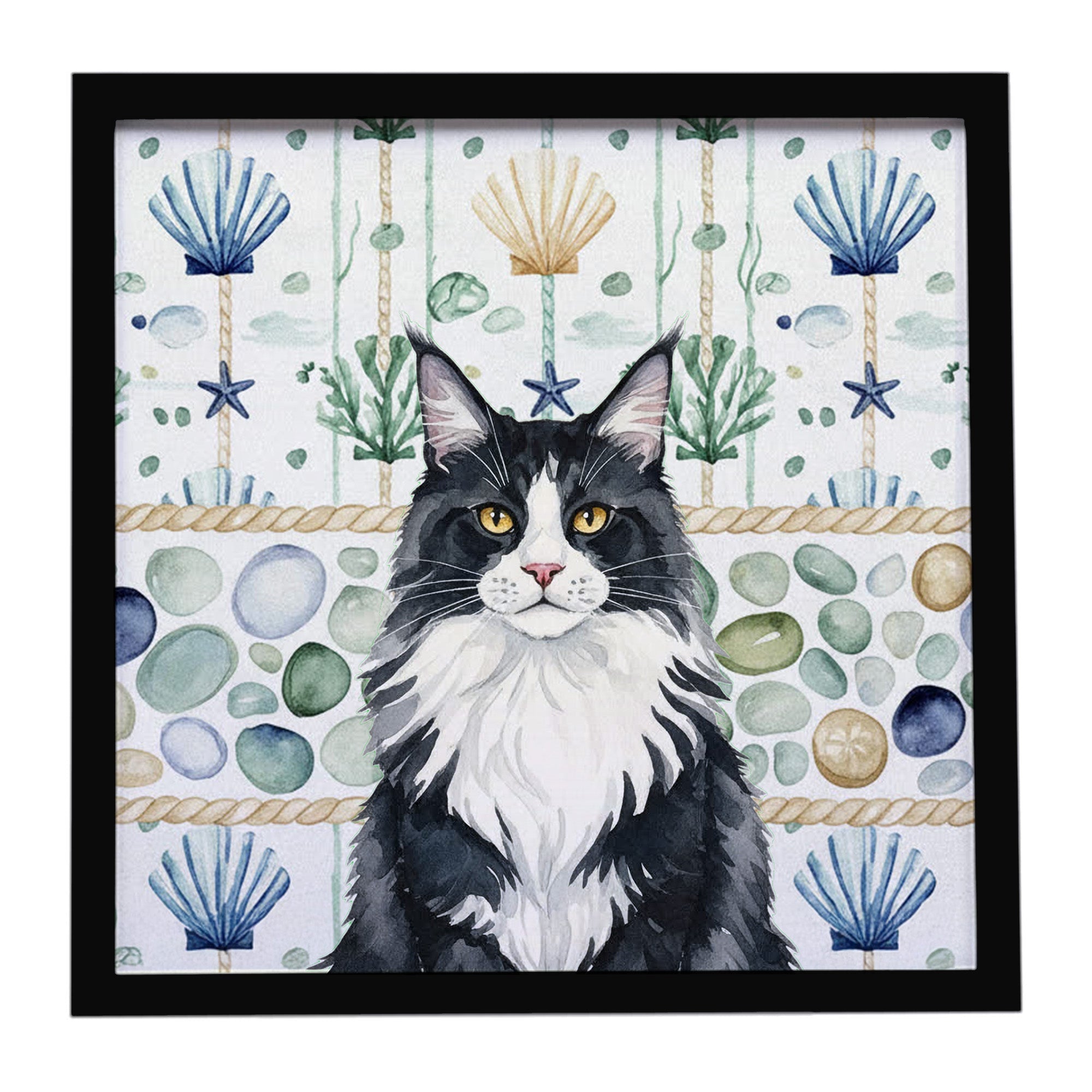Framed Metal Print featuring breed specific MaineCoon Black and White artwork. Looking for wall art that’s stylish, safe, and made to last? Our 8x8 Framed Metal Prints are designed with modern living in mind. Each piece features original artwork printed on durable aluminum, set in a sleek frame that measures 3/4 inch deep for a clean, contemporary finish. Unlike glass prints, these are lightweight, shatter-free, and family-safe. Perfect for kitchens, bathrooms, or covered porches where traditional décor might not hold up. The built-in sawtooth hanger molded into the back makes it easy to hang right out of the box—just use your own nails or screws. Cleaning is simple too: a quick wipe with a damp cloth and mild soap keeps your artwork looking vibrant. Proudly made in Alabama, every print supports our community of artists while adding personality and charm to your home.