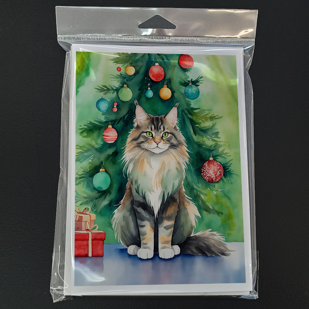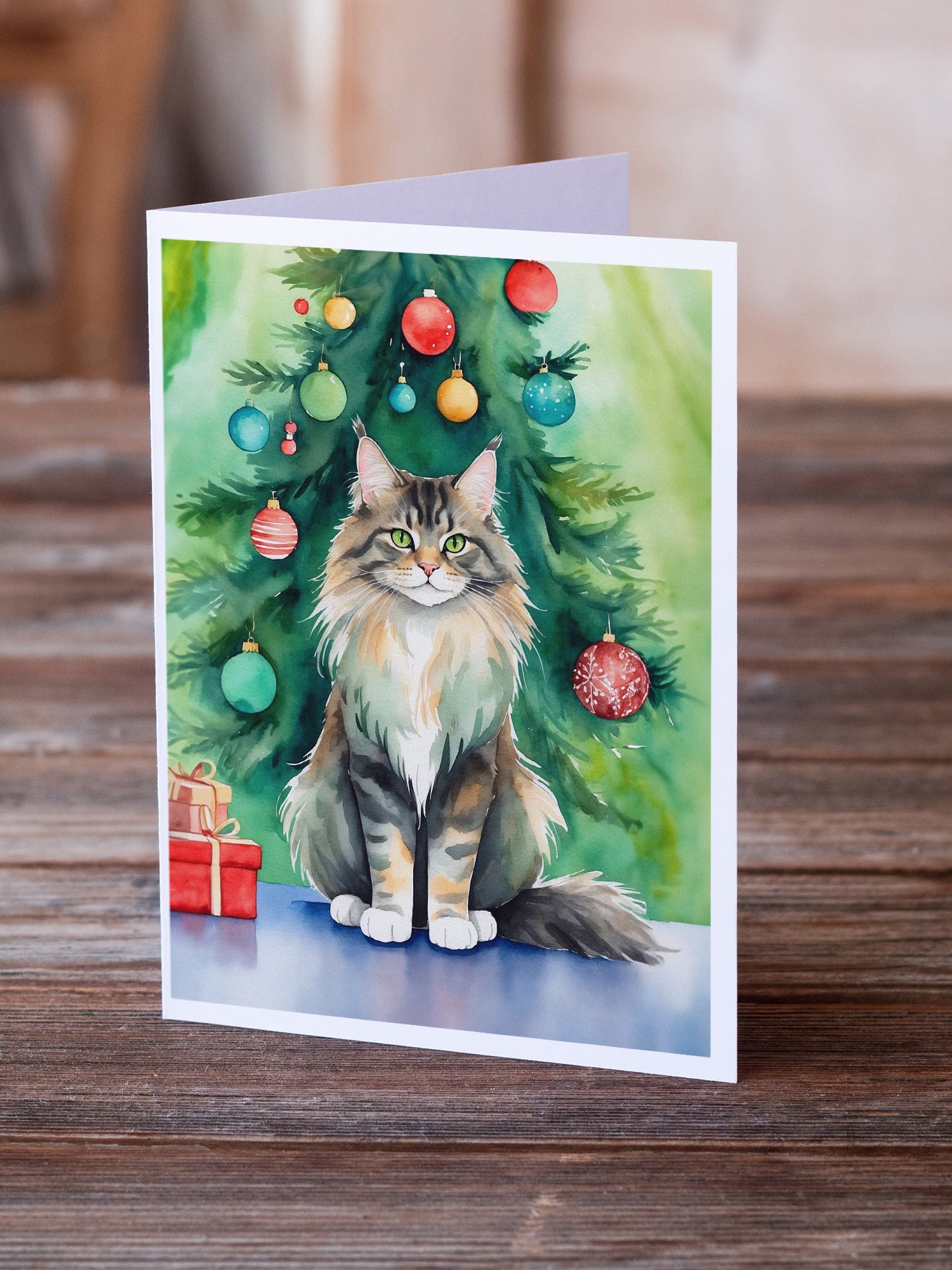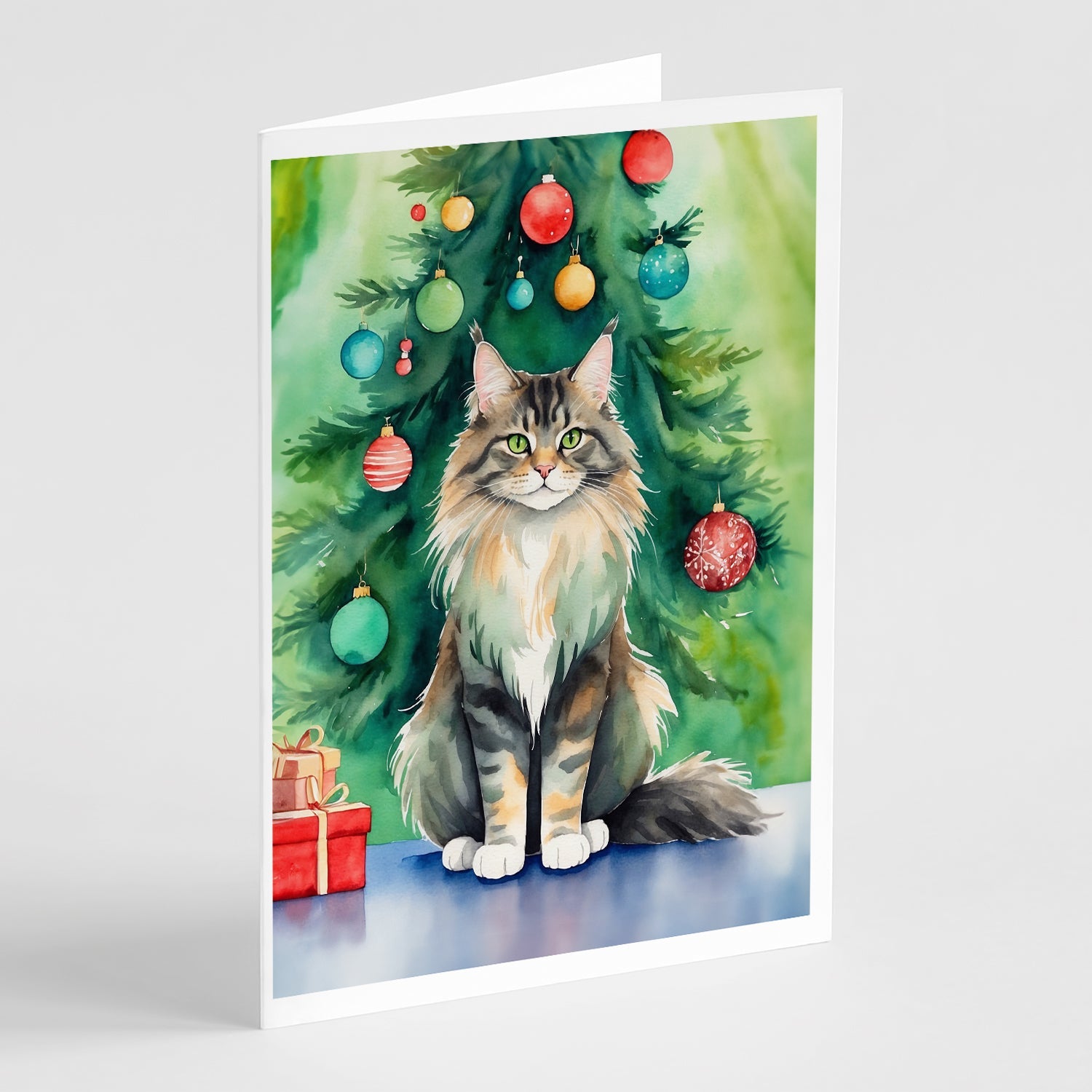 Shown here is the MaineCoon Cat By the Christmas Tree Greeting Cards Pack of 8 from Caroline's Treasures featuring artwork of a MaineCoon in a Christmas design. The detailed illustration and vibrant colors make it a standout accent for your home. Celebrate cozy holiday moments with our Cat by Christmas Tree Collection. Featuring festive designs that showcase beloved feline friends around classic holiday scenes, this collection brings heart-warming style and joyful charm to seasonal décor and thoughtful gifts for cat lovers. Celebrate special moments with Caroline's Treasures Printed Greeting Card Pack. This pack includes eight beautifully folded 5x7 cards, accompanied by eight matching white envelopes. With blank interiors, these cards provide ample space for your personalized messages and heartfelt holiday greetings. Each card features captivating full-color artwork, meticulously printed in our facility on high-quality 80 lb cover stock or 216 GSM. The super smooth finish of the white cards enhances the visual impact of the artwork, creating a truly stunning presentation. Designed by our talented in-house artists or licensed artists, the artwork on these cards showcases their creativity and attention to detail. From vibrant illustrations to captivating designs, each card tells its own unique story. Whether it's for birthdays, anniversaries, holidays, or any special occasion, Caroline's Treasures Greeting Card Pack is the perfect way to convey your heartfelt sentiments. Share joy, love, and warm wishes with these exquisite cards and make every moment unforgettable. Perfect for: Writing personal messages, everyday correspondence, and thoughtful notes, Cats-themed stationery collections, or year-round use for MaineCoon lovers. Makes a heartfelt gift for: MaineCoon owners, Cats lovers, Christmas gifts, pet parents, friends who adore their MaineCoon, or anyone celebrating Cats.