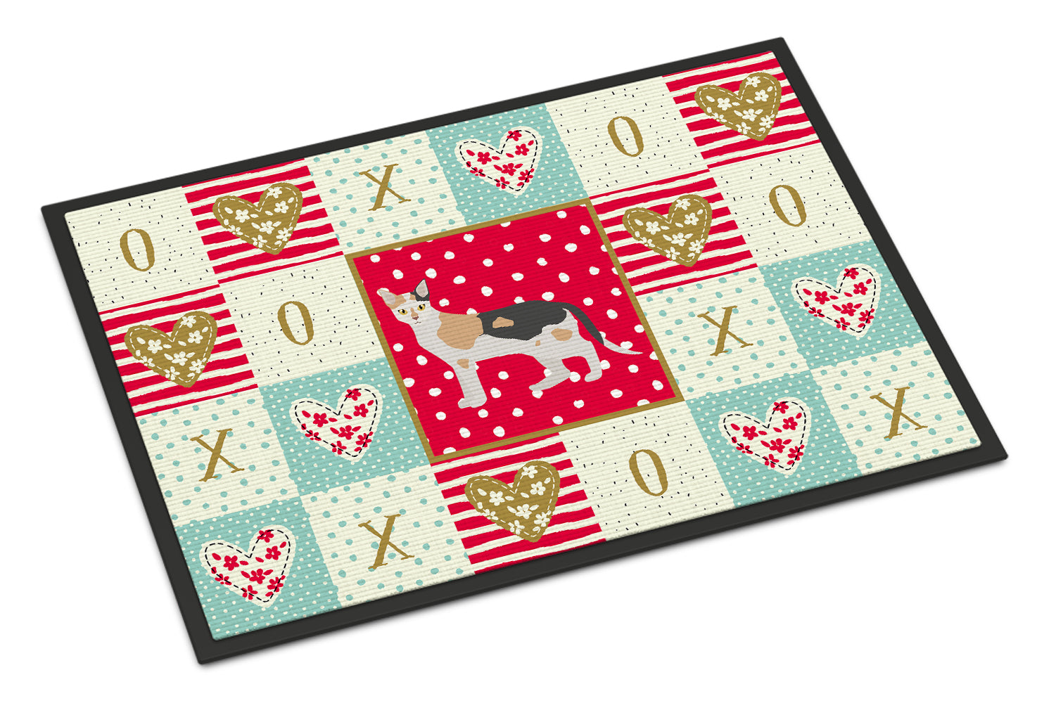 Decorate your space with our Valentine's Day Malayan artwork on a Doormat. Welcome your guests in style with our Artwork Door Mat, designed to withstand almost any weather condition. This mat, measuring approximately 24 by 36 inches, is held together by durable black binding tape. Its top layer, composed of polyester felt, is dyed with the eye-catching image you see on the mat. A few layers below provide the mat with stability, while its rubber bottom is stamped to help prevent slipping and ensures safety. Our mat works wonderfully as both an indoor or outdoor door mat. For cleaning, simply hose it off with water or use a power washer - no need for any cleaner that produces suds. Avoid scrubbing with a brush, instead, opt for the vacuum on floor setting. Designed manufactured and printed in the USA, this mat is a perfect addition to your porch, outdoor kitchen, entryway, or any indoor space. Its unique design makes it a charming decorative rug that greets your guests and adds a stylish touch to your home decor.