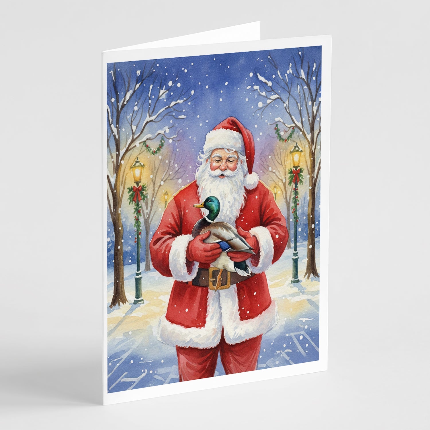 Greeting Cards Pack of 8 featuring breed specific Mallard artwork. Celebrate Christmas with this Christmas . Celebrate special moments with Caroline's Treasures Printed Greeting Card Pack. This pack includes eight beautifully folded 5x7 cards, accompanied by eight matching white envelopes. With blank interiors, these cards provide ample space for your personalized messages and heartfelt holiday greetings. Each card features captivating full-color artwork, meticulously printed in our facility on high-quality 80 lb cover stock or 216 GSM. The super smooth finish of the white cards enhances the visual impact of the artwork, creating a truly stunning presentation. Designed by our talented in-house artists or licensed artists, the artwork on these cards showcases their creativity and attention to detail. From vibrant illustrations to captivating designs, each card tells its own unique story. Whether it's for birthdays, anniversaries, holidays, or any special occasion, Caroline's Treasures Greeting Card Pack is the perfect way to convey your heartfelt sentiments. Share joy, love, and warm wishes with these exquisite cards and make every moment unforgettable.