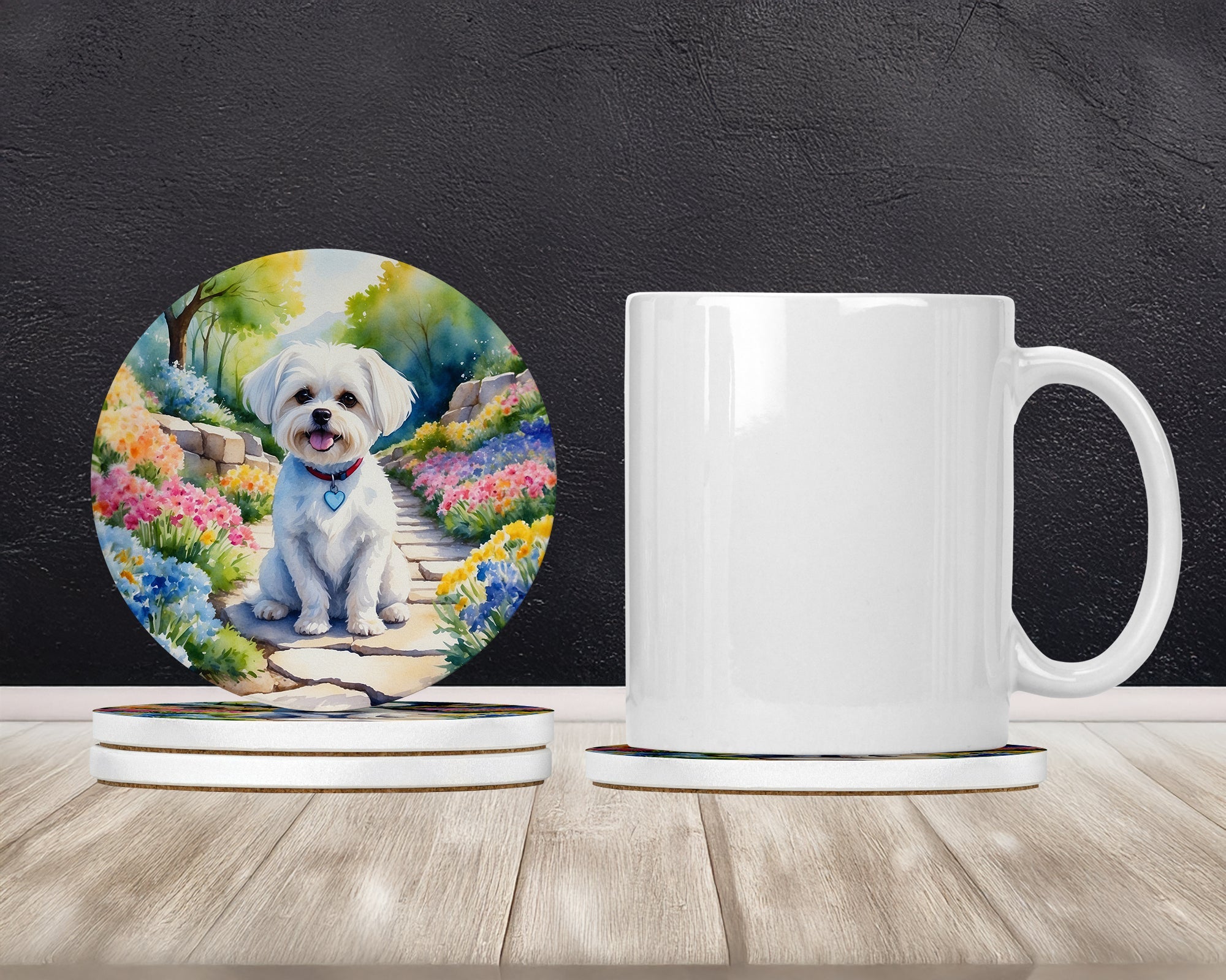 Large Sandstone Coasters Pack of 4 featuring breed specific Maltese artwork. Introducing Caroline's Treasures Large Sandstone Coasters Pack of 4, the perfect addition to your home decor. Each coaster measures nearly 4 inches and is made from absorbent sandstone with a cork backing. Designed and printed in the United States, these coasters feature artwork from Caroline's Treasures' talented artists. Protect your countertops and tables from hot and cold drink condensation with these absorbent coasters. They efficiently absorb moisture, ensuring your surfaces stay dry and clean. Choose from a wide range of designs to update and enhance your decor or give them as a thoughtful gift for any occasion. Cleaning is a breeze—simply wipe the coaster with a damp towel to remove any spills or stains. Each set comes in a brown gift box, making it ready to be wrapped for that special person in your life. These absorbent sandstone coasters also make an excellent housewarming gift, providing both practicality and style. Celebrate birthdays, Mother's Day, Father's Day, Thanksgiving, Christmas, Teacher's Appreciation Day, or simply show someone you care with these versatile and charming coasters. Caroline's Treasures Large Sandstone Coasters Pack of 4 is the perfect happy gift for any occasion.