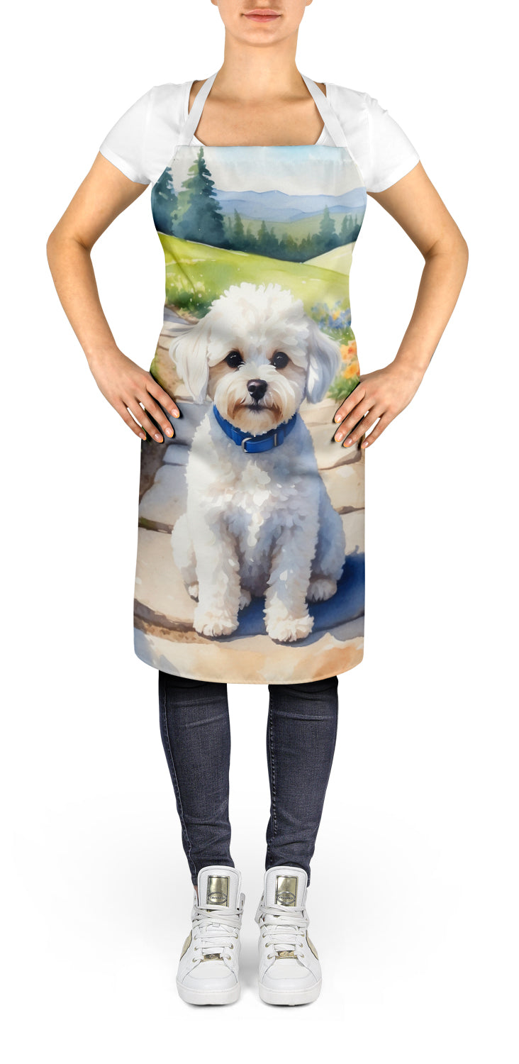 Decorate your space with our Maltipoo artwork on a Apron. Bring a bit of Spring into your home with a Spring Apron. Elevate your cooking, baking, and grilling experiences with our versatile Kitchen or BBQ Apron. This Bib Style apron isn't just limited to culinary activities - it also serves as an excellent baking apron, artist apron, server apron, gardening apron, or even a dog grooming apron. The apron showcases vibrant full-color artwork contributed by one of our talented artists, bringing a dash of style to your daily tasks. With dimensions of approximately 27"W x 30"H, it provides ample coverage to protect your clothing from spills and splashes. Our apron is meticulously crafted from 100% Ultra Spun Polyester, known for its durability and lightweight nature. The apron comes with white tie straps, ensuring a comfortable and adjustable fit for all. It's a perfect choice for kitchen apron enthusiasts, whether you are a woman or a man. Designed for easy maintenance, this apron is fully machine washable. The quick-drying polyester material actively reduces staining, keeping your apron looking fresh and new for longer. Our beautifully designed apron isn't just a functional kitchen accessory - it's a fashion statement in the culinary world!
