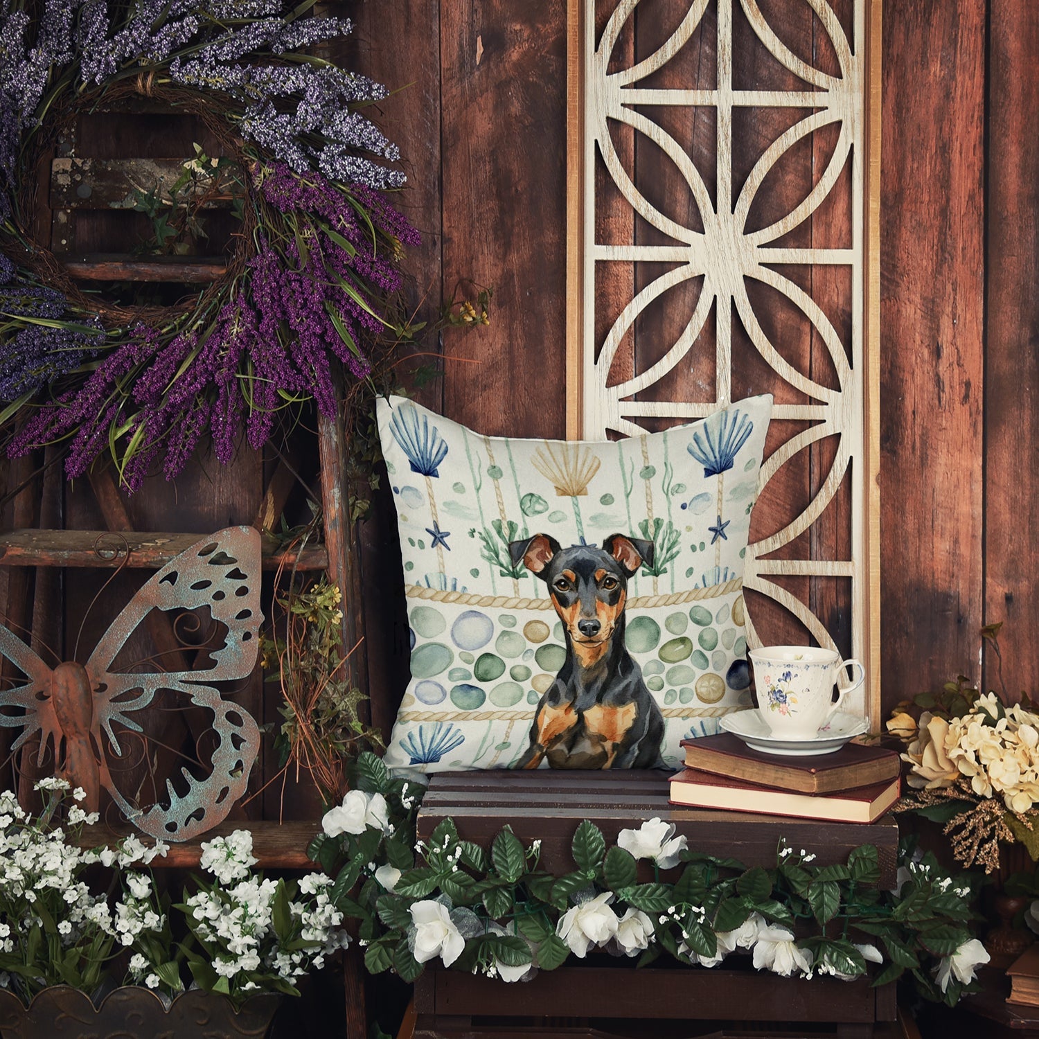 Throw Pillow featuring breed specific Manchester Terrier artwork. Revitalize your outdoor or indoor living space with Caroline's Treasures 18x18 Fabric Decorative Pillow. With a generously sized dimension of approximately 18 inches by 18 inches, this pillow makes a comfortable and aesthetic addition to any seating area. Made from a unique, water-resistant material developed by Caroline's Treasures, the pillow sham is 100% polyester fabric that's durable and ready to weather any condition. Its vibrant, full-color artwork will not fade over time as it is dyed with color-fast dyes. Whether you place it on your patio furniture, porch, veranda, or indoor couch, its soft canvas fabric ensures a cozy experience. The pillow is handcrafted in the United States, featuring a sham created from three pieces of fabric and a polyester insert for enduring shape and overstuffed comfort. Despite being robustly built to endure the outdoors, it is as soft and snug as your favorite indoor cushions. Please note, as all our pillows are handmade, sizes may vary slightly, adding to the charm of this unique decorative item.