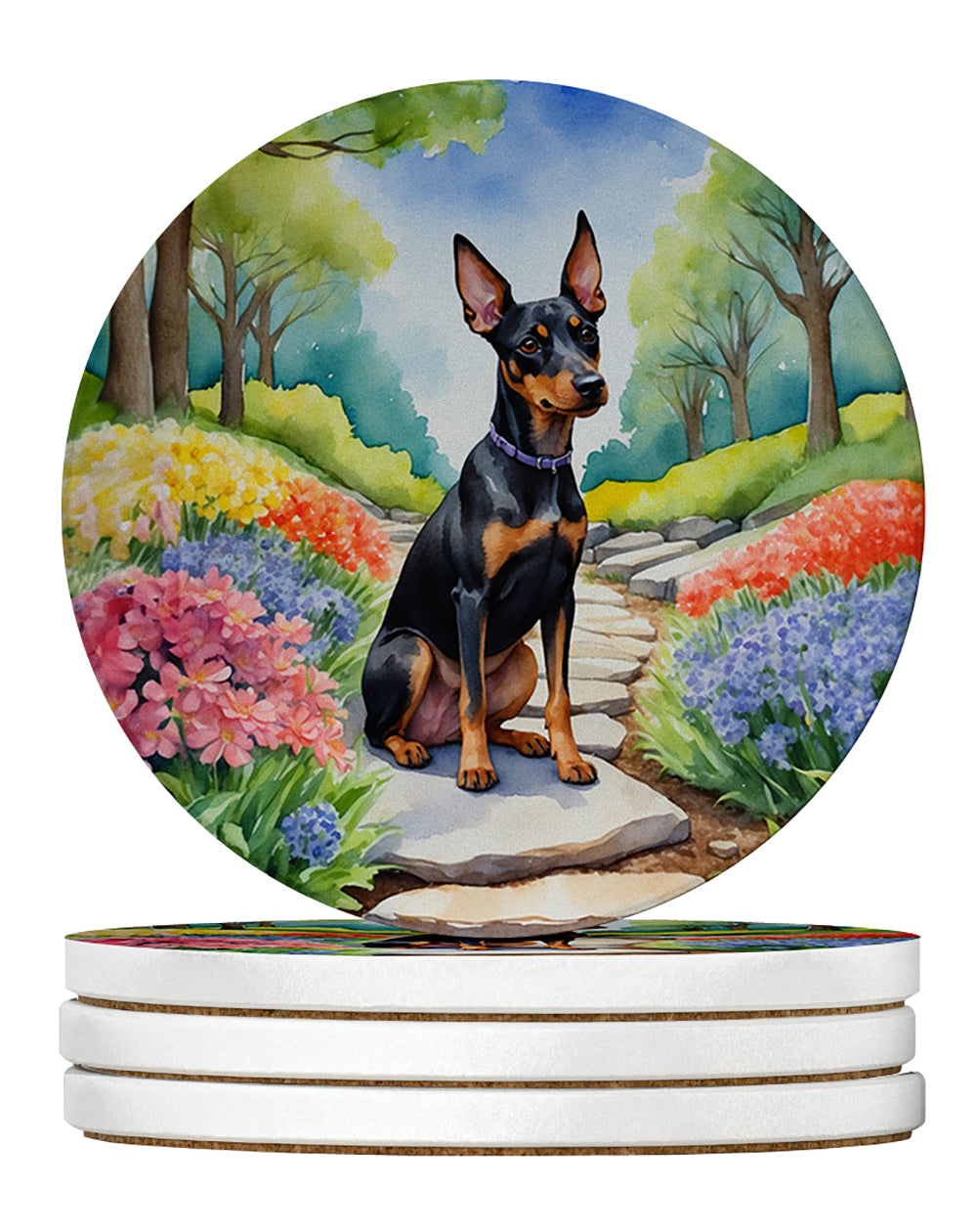 Large Sandstone Coasters Pack of 4 featuring breed specific Manchester Terrier artwork. Introducing Caroline's Treasures Large Sandstone Coasters Pack of 4, the perfect addition to your home decor. Each coaster measures nearly 4 inches and is made from absorbent sandstone with a cork backing. Designed and printed in the United States, these coasters feature artwork from Caroline's Treasures' talented artists. Protect your countertops and tables from hot and cold drink condensation with these absorbent coasters. They efficiently absorb moisture, ensuring your surfaces stay dry and clean. Choose from a wide range of designs to update and enhance your decor or give them as a thoughtful gift for any occasion. Cleaning is a breeze—simply wipe the coaster with a damp towel to remove any spills or stains. Each set comes in a brown gift box, making it ready to be wrapped for that special person in your life. These absorbent sandstone coasters also make an excellent housewarming gift, providing both practicality and style. Celebrate birthdays, Mother's Day, Father's Day, Thanksgiving, Christmas, Teacher's Appreciation Day, or simply show someone you care with these versatile and charming coasters. Caroline's Treasures Large Sandstone Coasters Pack of 4 is the perfect happy gift for any occasion.