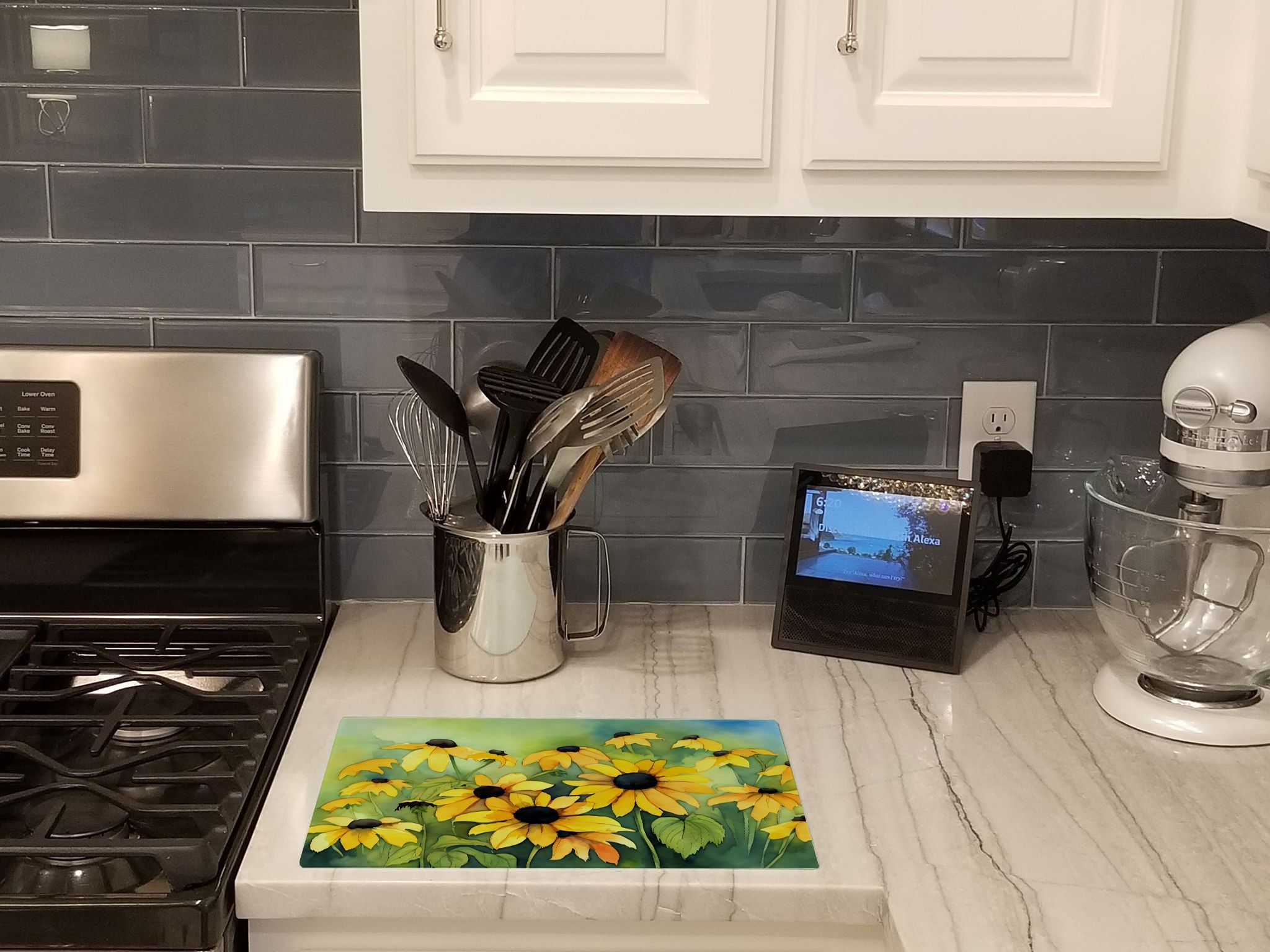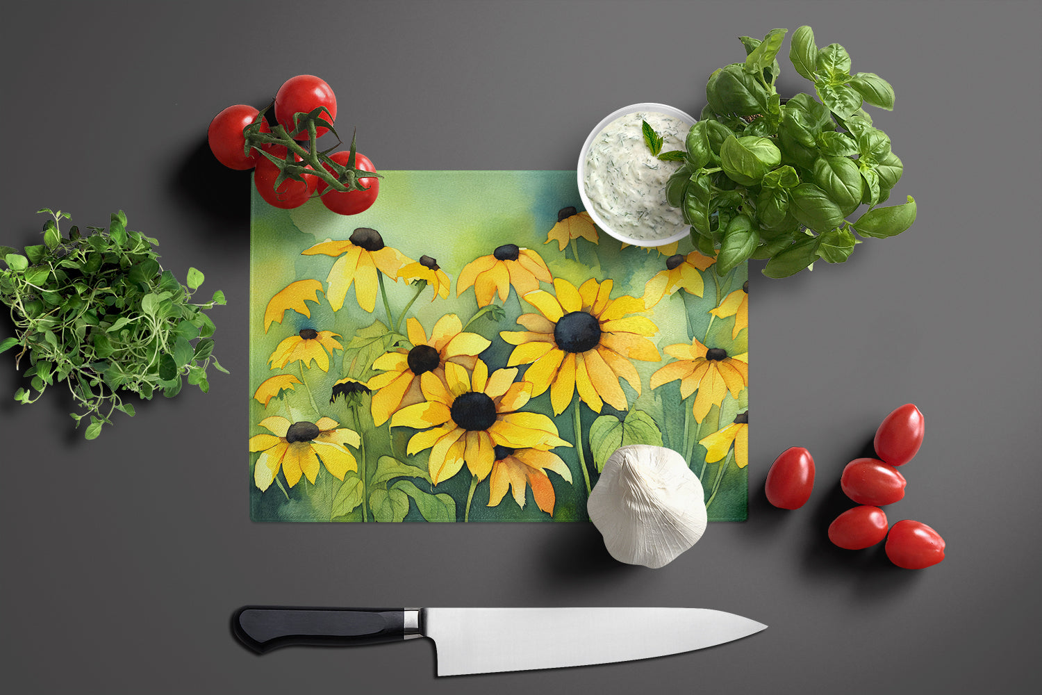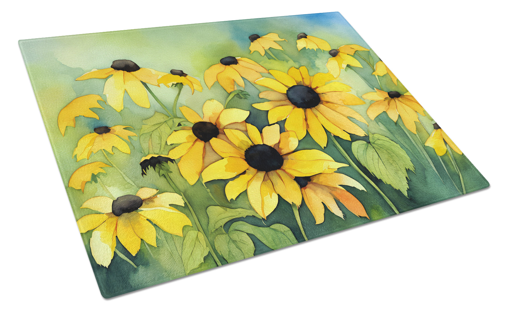 Maryland Black-Eyed Susans in Watercolor Glass Cutting Boards – Durable, Decorative Kitchen Art Large